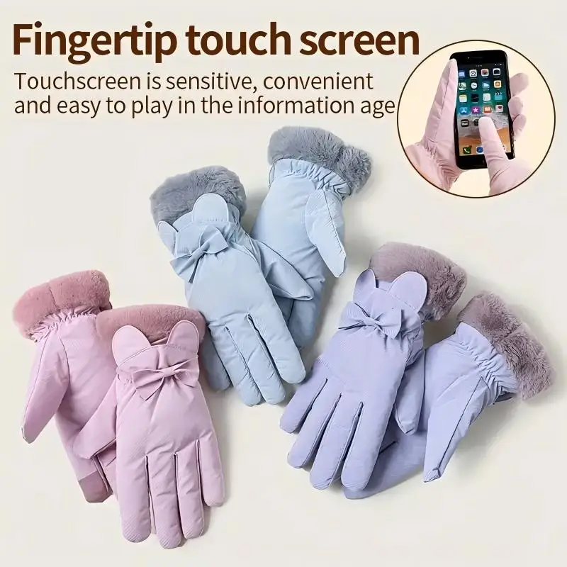 1 Pair Women's Winter Warm Gloves,Thick Fleece Lined,Touchscreen,Non-Slip Windproof,Fashionable Outdoor Gloves for Autumn/Winter