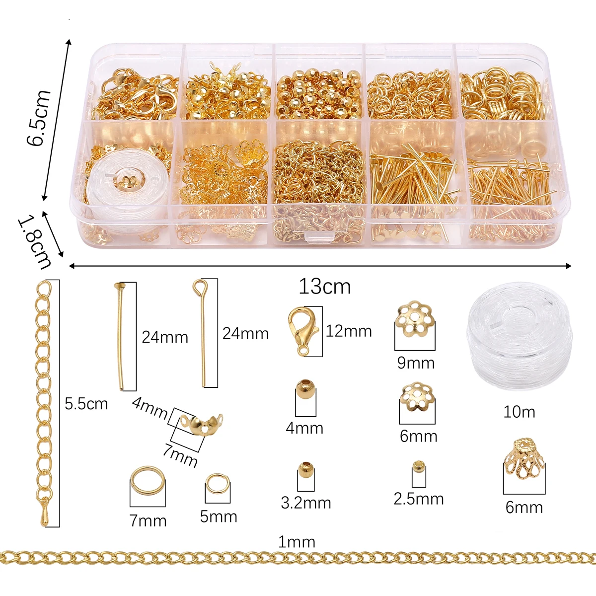 10 Grids 820pcs DIY Jewelry Making Kit Alloy Chain with Multi-Connector Clasp Types Professional for Bracelet Earrings Craft