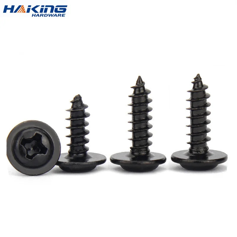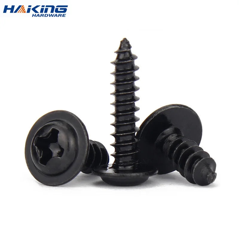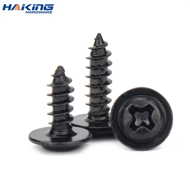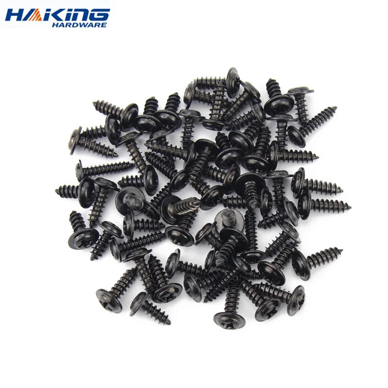 100pcs/lot Black Self-tapping Screw Pan Head PWA Cross Round Head With Washer Cushion M1.4 M1.7 M2 M2.3 M2.6 M3 M3.5 M4