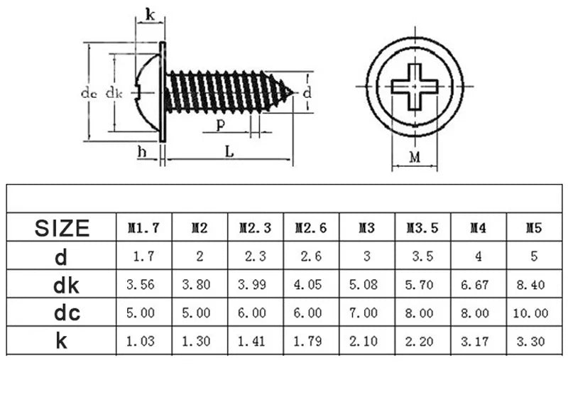 Size:M1.4 M1.7 M2 M2.3 M2.6 M3 M4