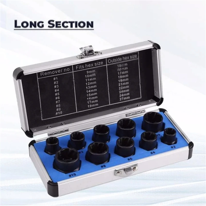 10pcs/lot Hex Socket Set Damaged Bolt Nut Screw Remover Garage 9-19 Mm Sockets Car Repair Hand Tool Electric Drill Accessories