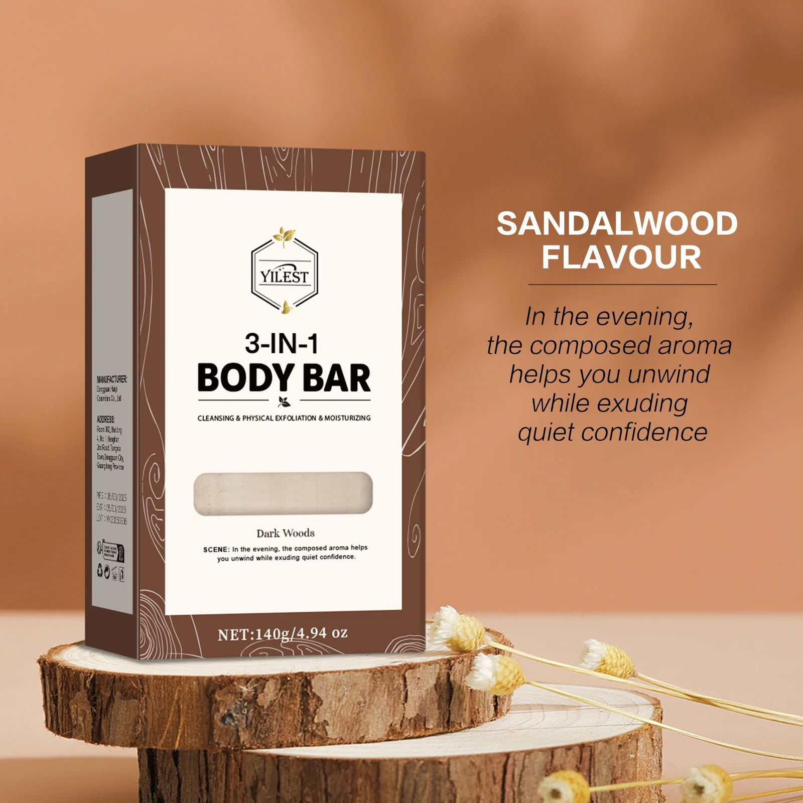YILEST 140g 3-IN-1 Men's Body Bar – Exfoliating, Cleansing & Moisturizing Handmade Soap w/ Shea Butter & Long-Lasting Fragrance (Sandalwood/Lemon Citrus Scent)