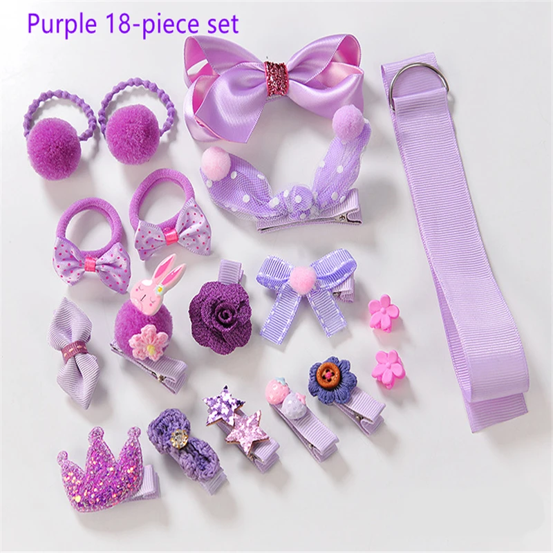 18 hairpin set cute hair accessories girls cartoon hairpin headdress bow flower animal hairpin hair circle elastic headdress