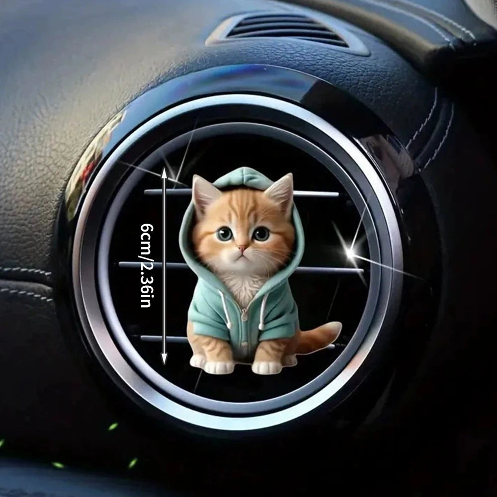 1PC Hoodie Kitten Finished Ventilating Clip Car Decoration Aromatreatment Acrylic Accessories