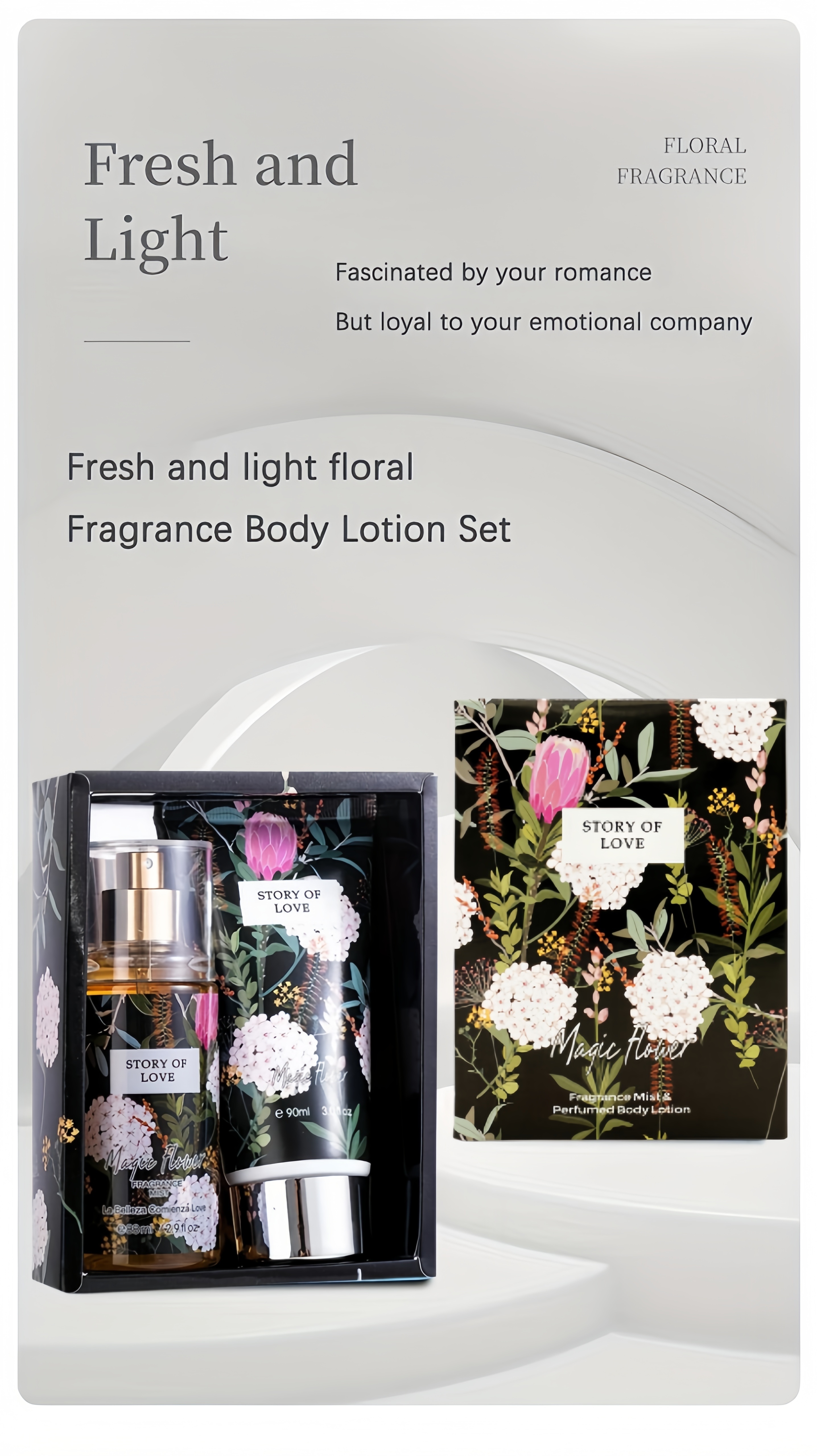 2.98oz Fragrance Mist&3.04oz Perfumed Body Lotion, Floral Notes, A Perfect Gift For Her, Nourishing Moisturizing Gift Set