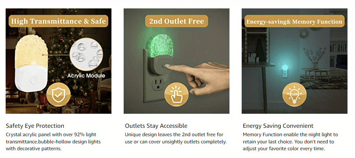 Put the lamp in the bedroom, living room, bedside, baby room, front door or bathroom at night, and apply warm light as indirect lighting to the dark. It is also recommended as a gift for family and friends, such as parties, Christmas gifts, etc.
