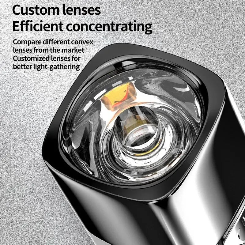 • USB Charging :With its built-in USB charging feature, this flashlight can be conveniently recharged using any USB power source, making it a reliable tool for outdoor adventures.