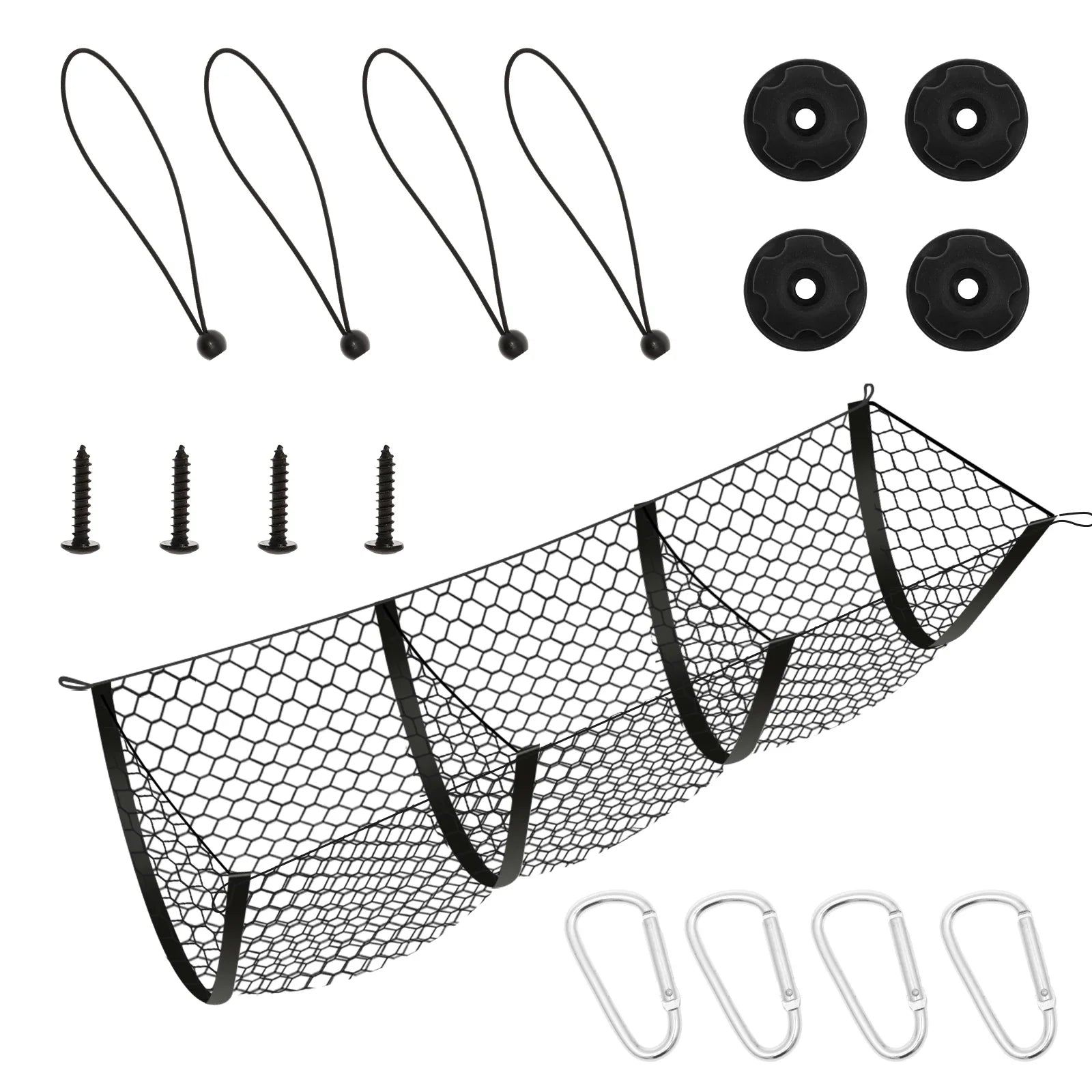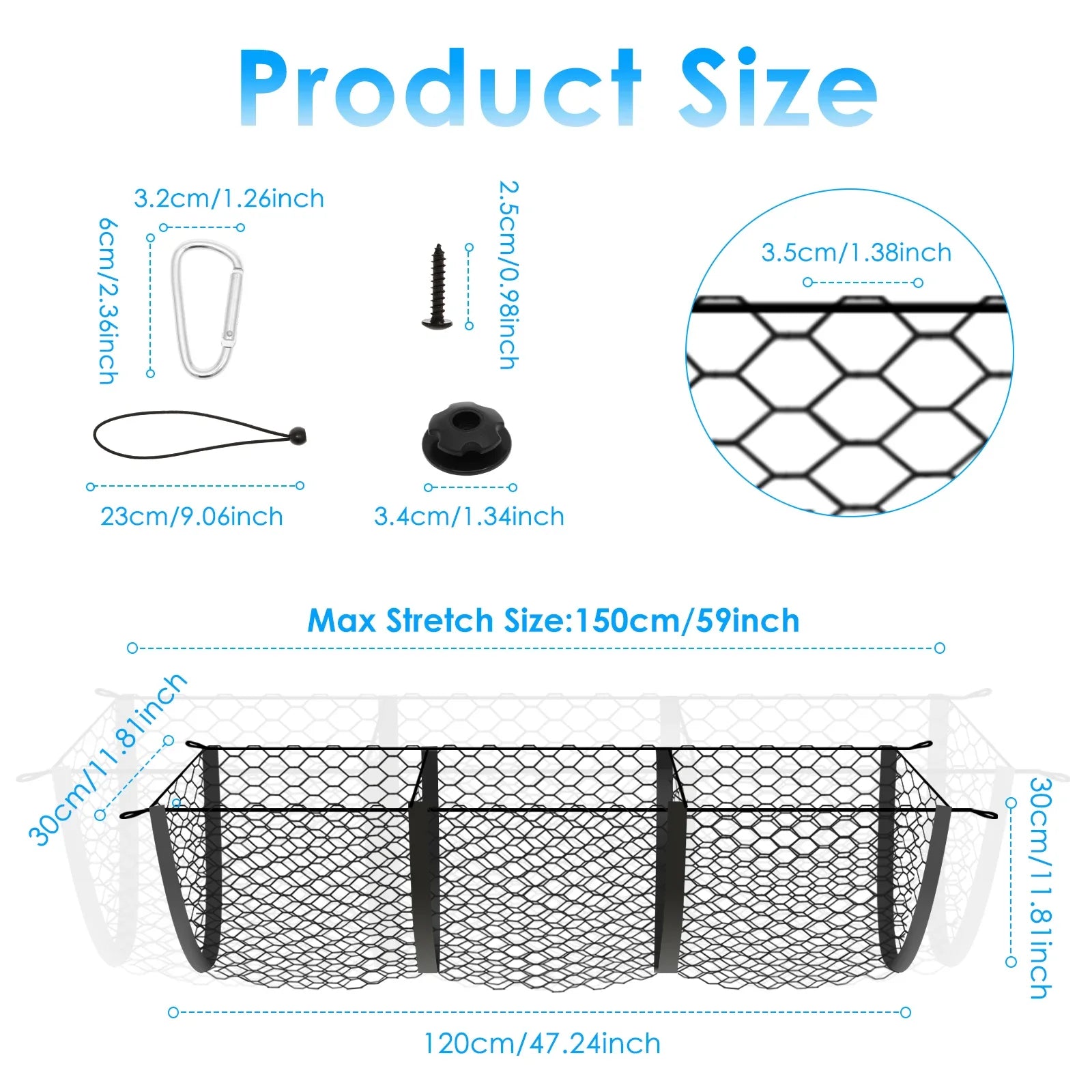 Sturdy Mesh Construction : The cargo net is carefully crafted from great polypropylene , ensuring both practicality and flexibility . This material is enduring and elastic , and the three pocket design further facilitates orderly organization of various groceries and items