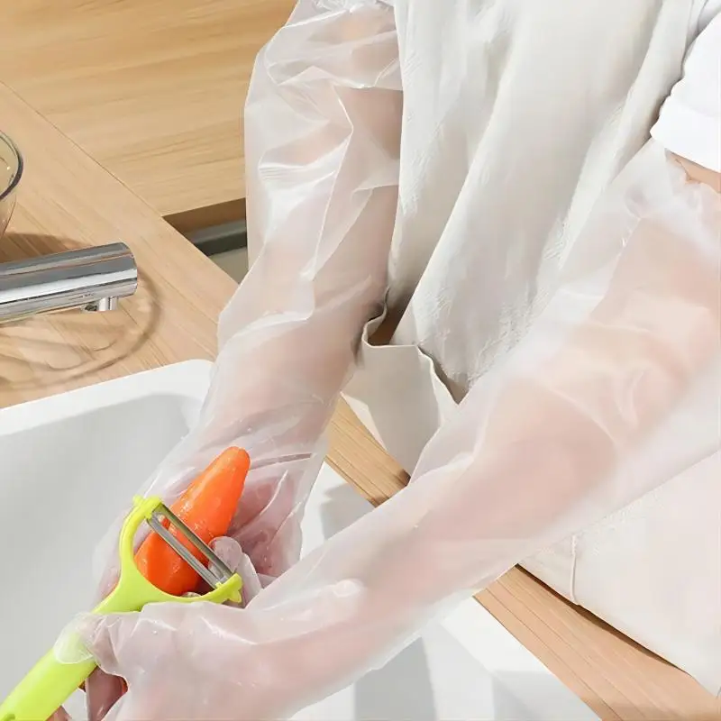30PCS Disposable Arm Guard Gloves Kitchen Household Cleaning Waterproof Elastic Drawstring Lengthened CPE Long-Arm Gloves