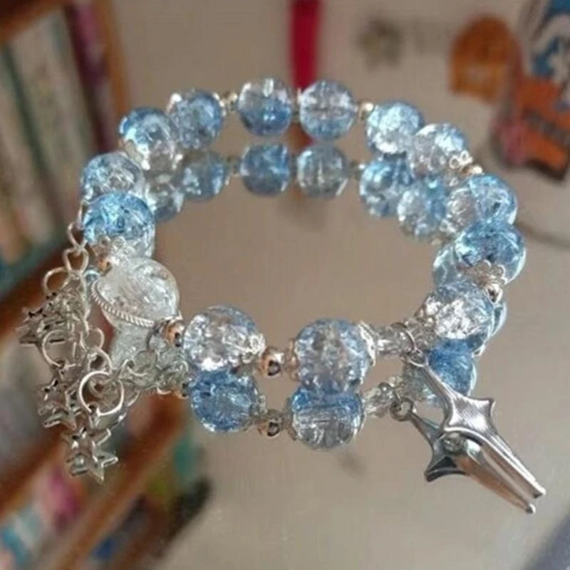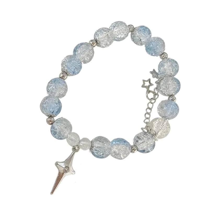 Elevating your wrist game with this star chain tassels bracelet, featuring crystal beads that shimmer with every movement, making it a standout accessory for any outfit.