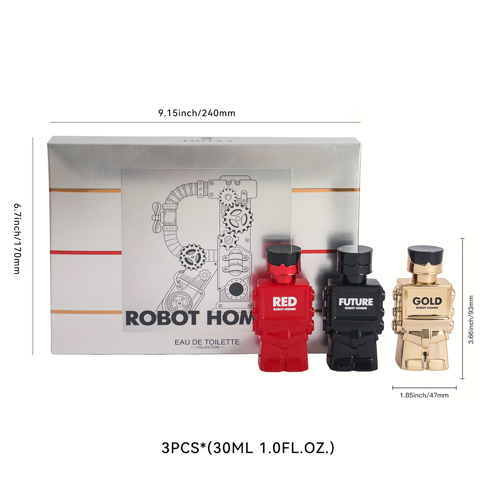 3PCS Robot Perfume Gift Set For Men, Eau De Toilette Spray, Refreshing And Long Lasting Fragrance With Woody Notes Cologne Travel Size For Dating And Daily Life, 90ML 3.04FL.OZ Gift For Men Father's Day Gift