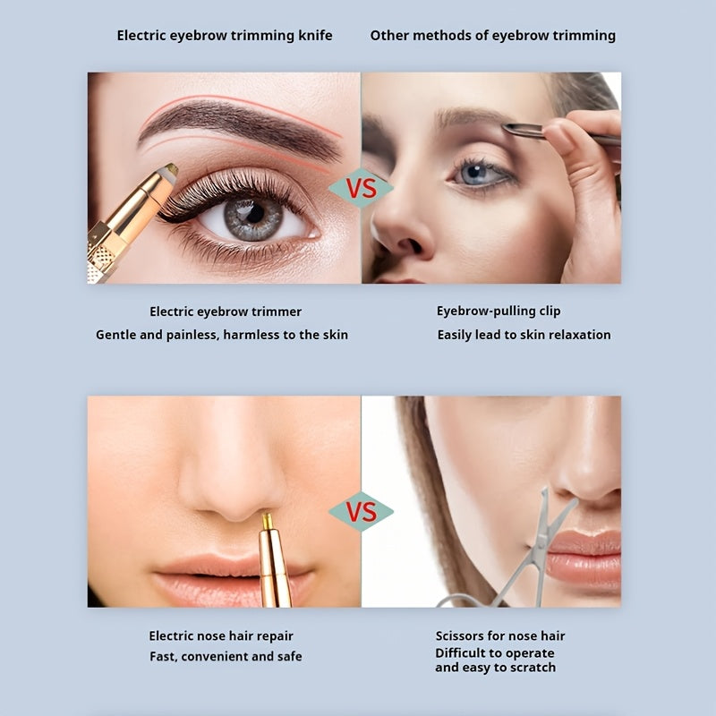 4-in-1 Portable Electric Trimmer Kit - USB Rechargeable, 150mAh Lithium Polymer Battery, Rose Golden & White - Ideal for Eyebrows, Nose, Legs, Armpits & Bikini Hair Removal with Precision Attachments, Personal Grooming Kit|St