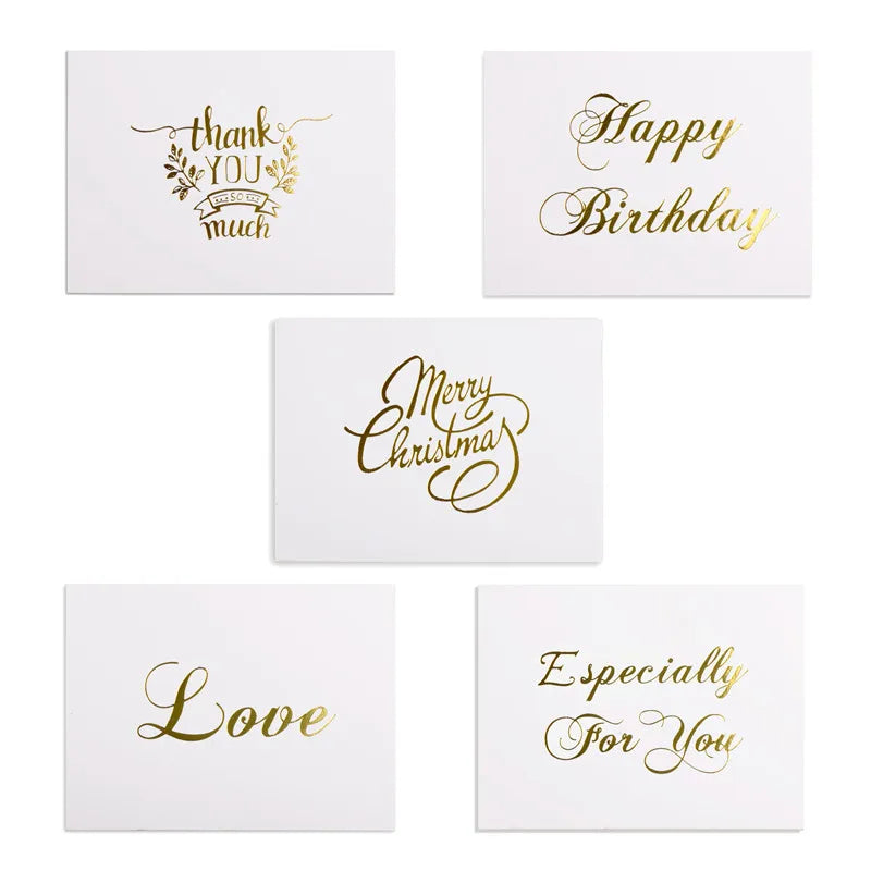 48pcs Mini Gold Embossed Thank you Card Valentine Happy Birthday Christmas Party Wedding Invitations Letter Greeting Cards