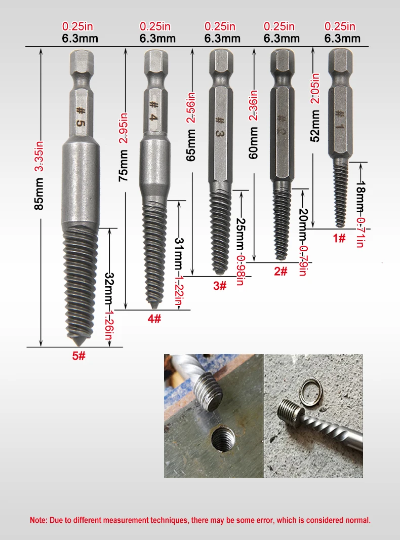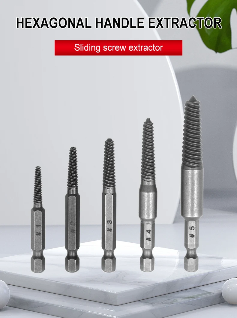 • 5pc Hex Handle Broken Head Screw Removal Tool :This product comes in a set of 5 different sizes, making it versatile for various screw removal needs.