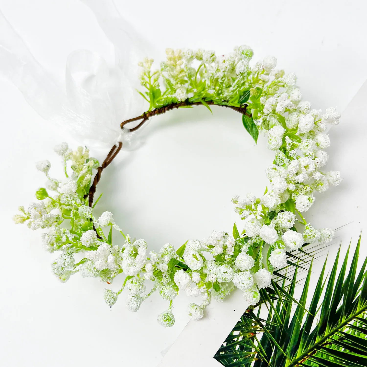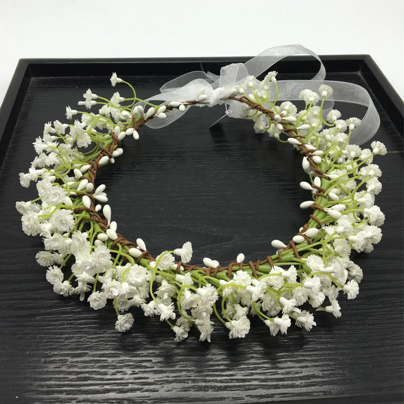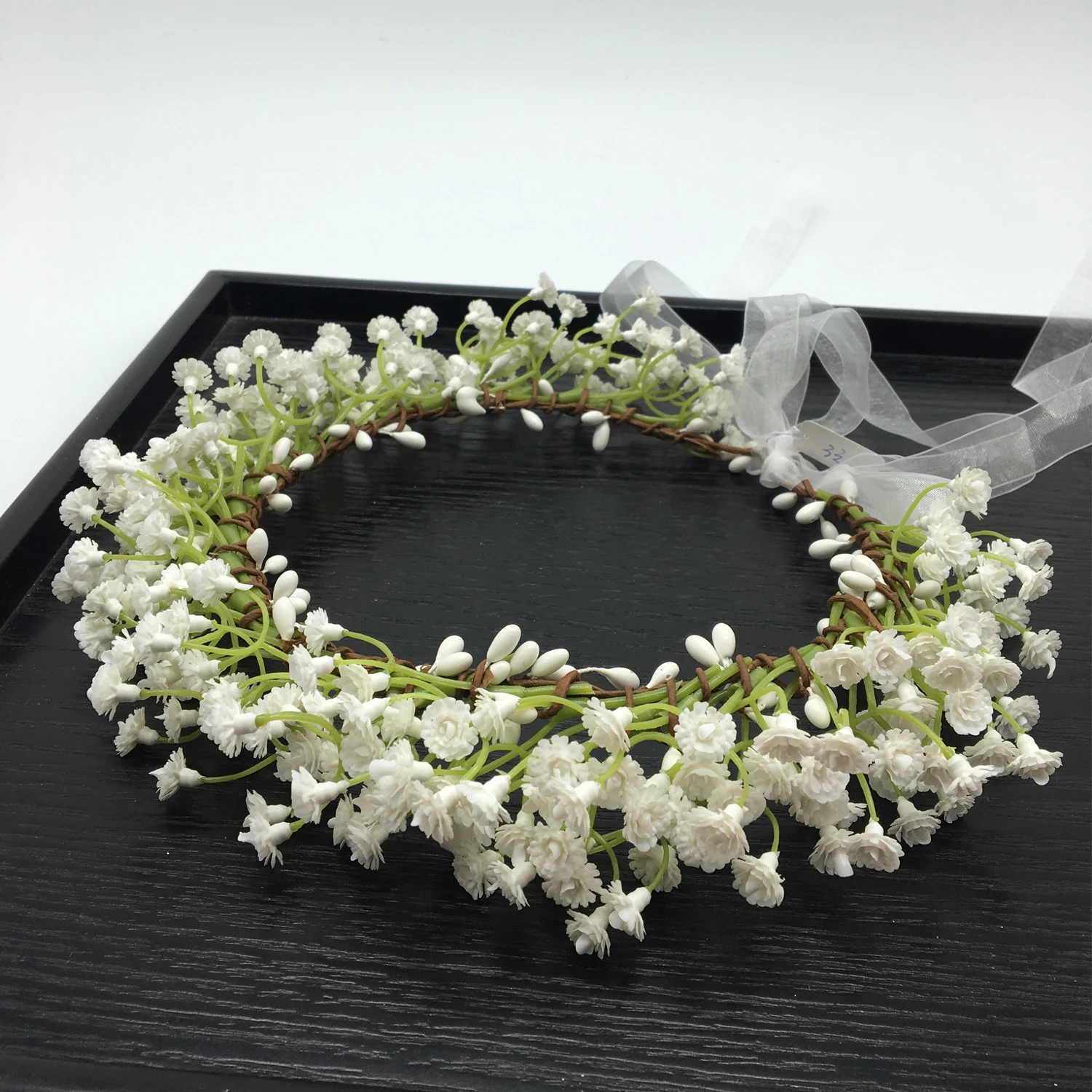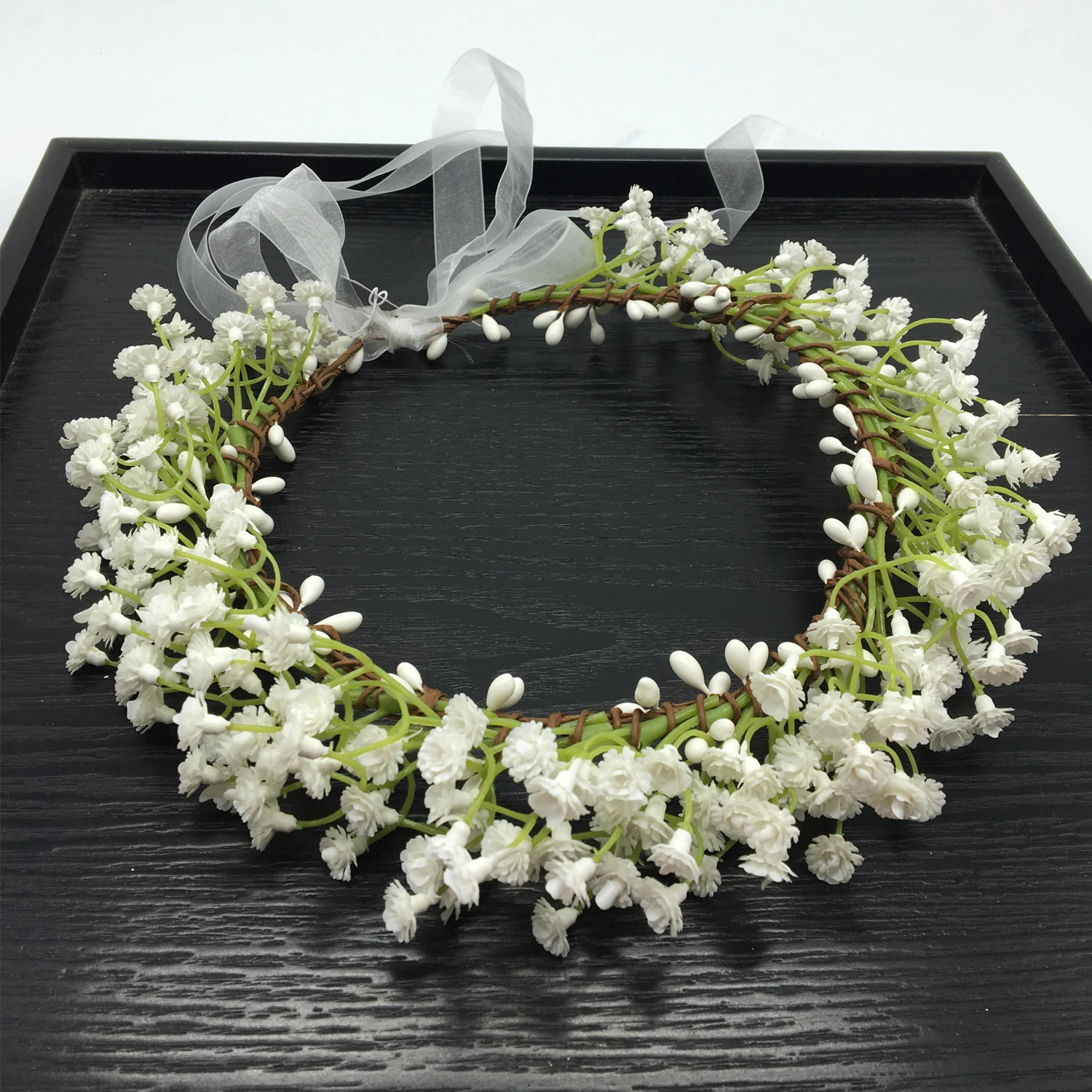 Breathable White Flower Crowns Tiaras Hairbands Romantic Sweet Gardland Women Wedding Hair Accessories for Bride Bridesmaids
