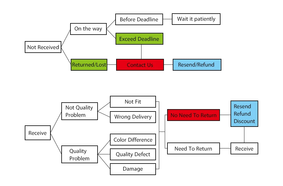 If the goods are damaged or lost, please contact us, we will resend them directly or give you a refund.