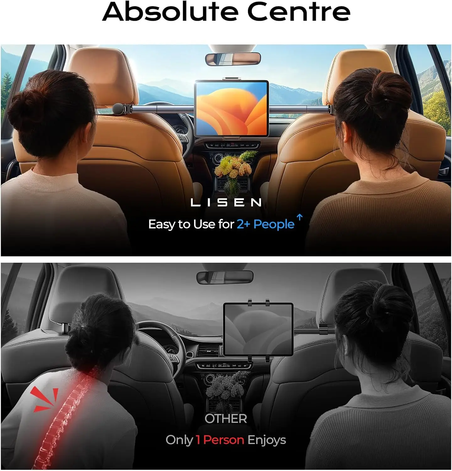 YOUR PREFERRED ADJUSTABILITY: Choose having your tablet directly being a car seat for a single passenger or in between the driver’s or passenger seats for multiple passengers. The ball-head allows for different viewing angles and for 360° rotation.
