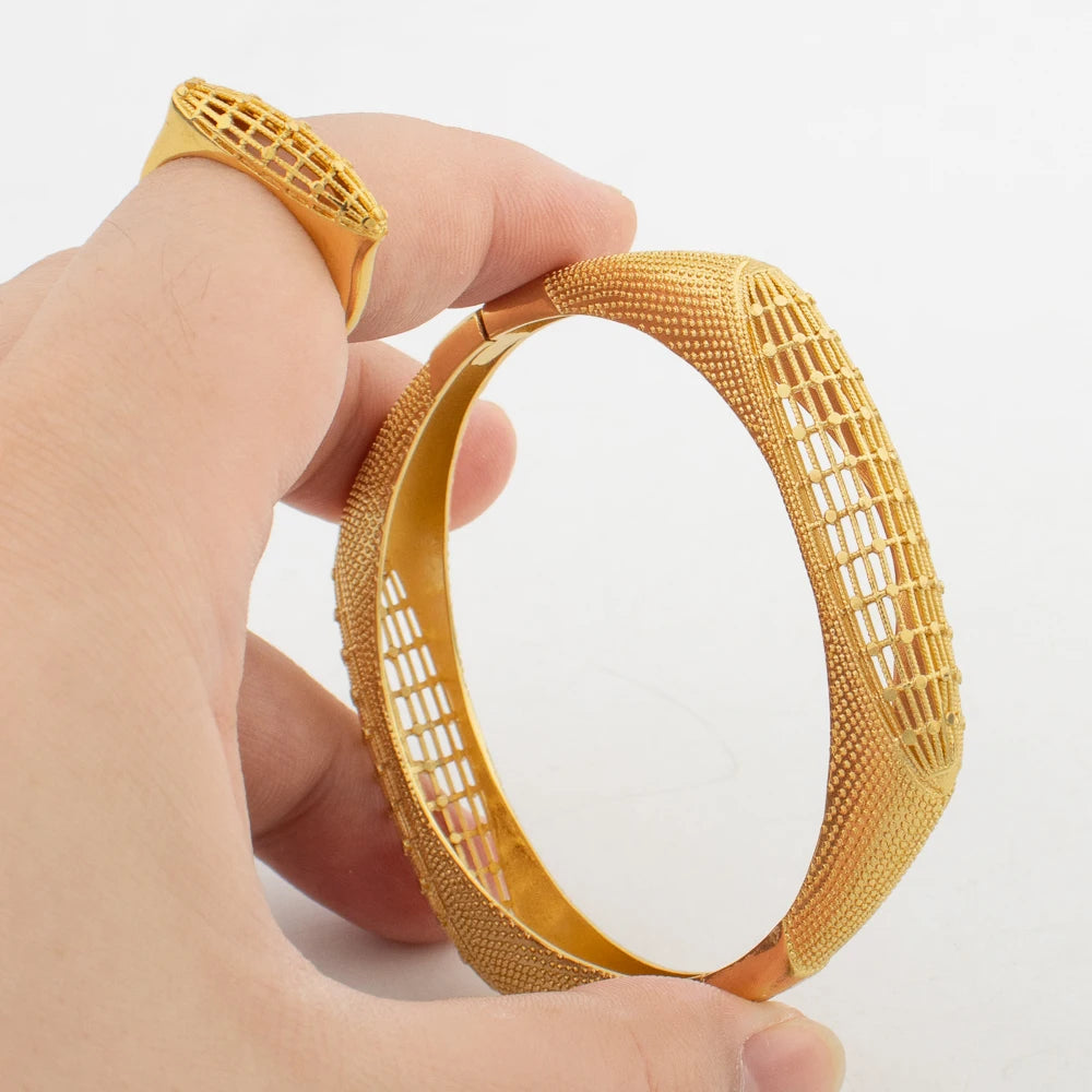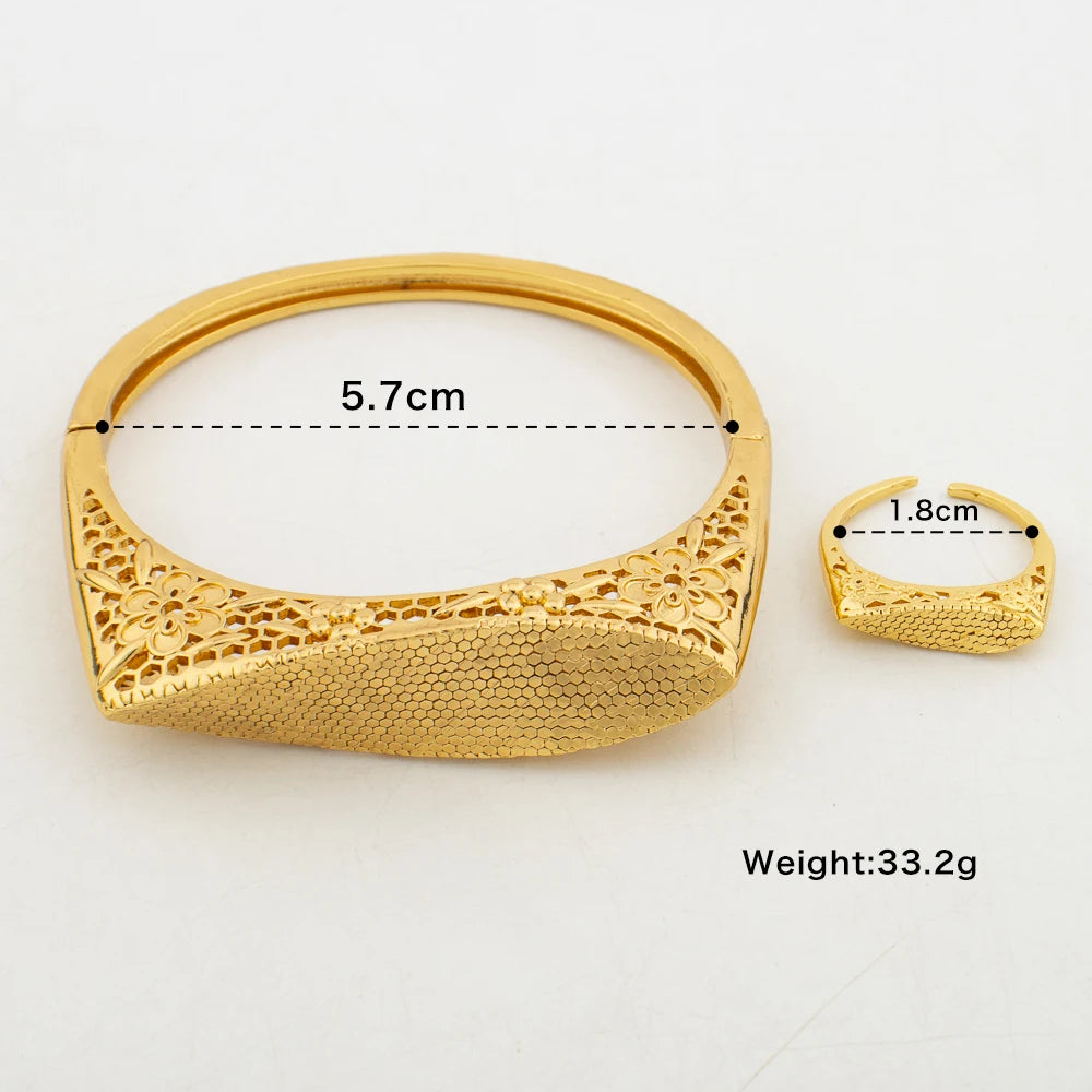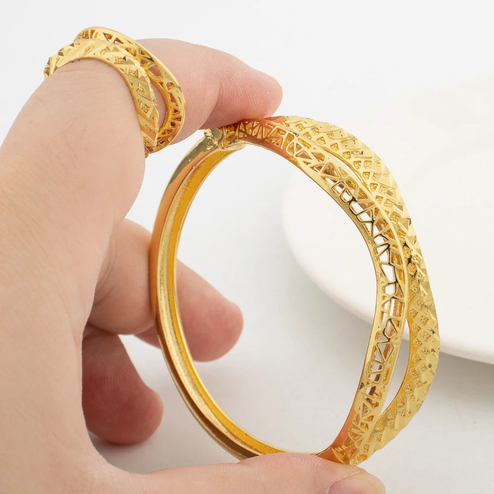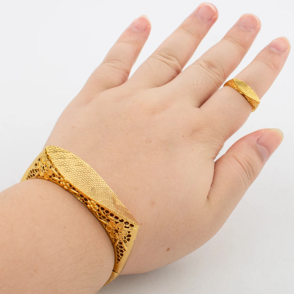Charm Bracelets with Rings Dubai Wedding Bride Jewelry 18K Gold Plated Fashion Bangles for Women Open Ring Party Weddings Gifts