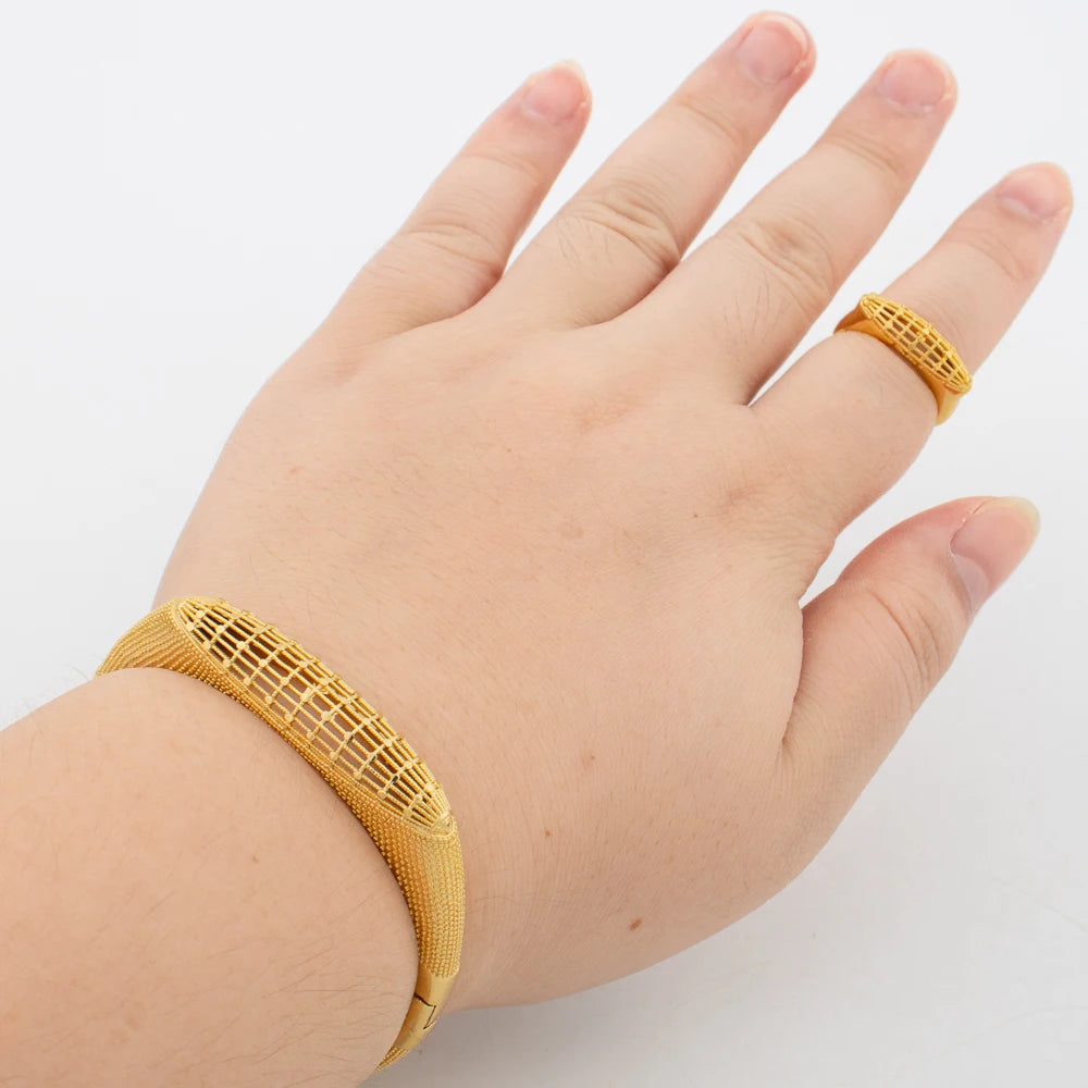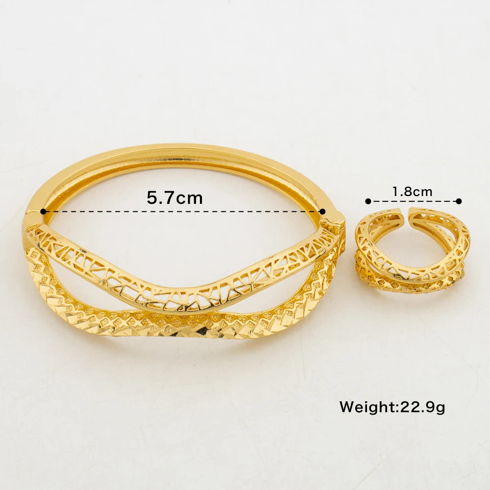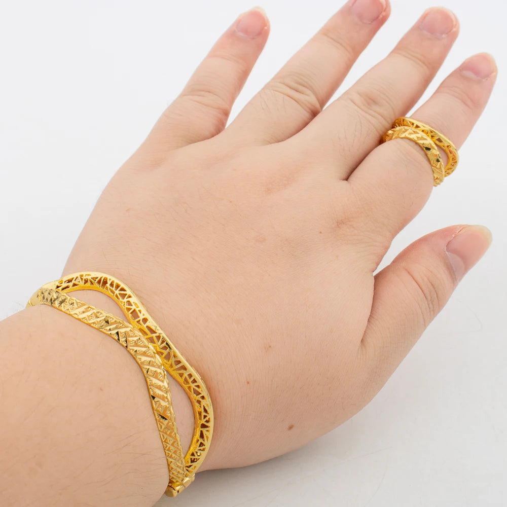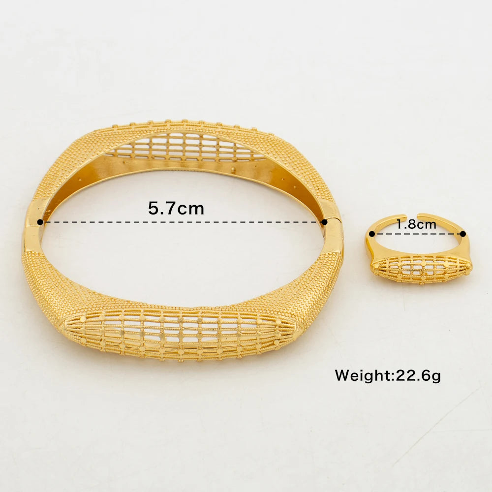Charm Bracelets with Rings Dubai Wedding Bride Jewelry 18K Gold Plated Fashion Bangles for Women Open Ring Party Weddings Gifts