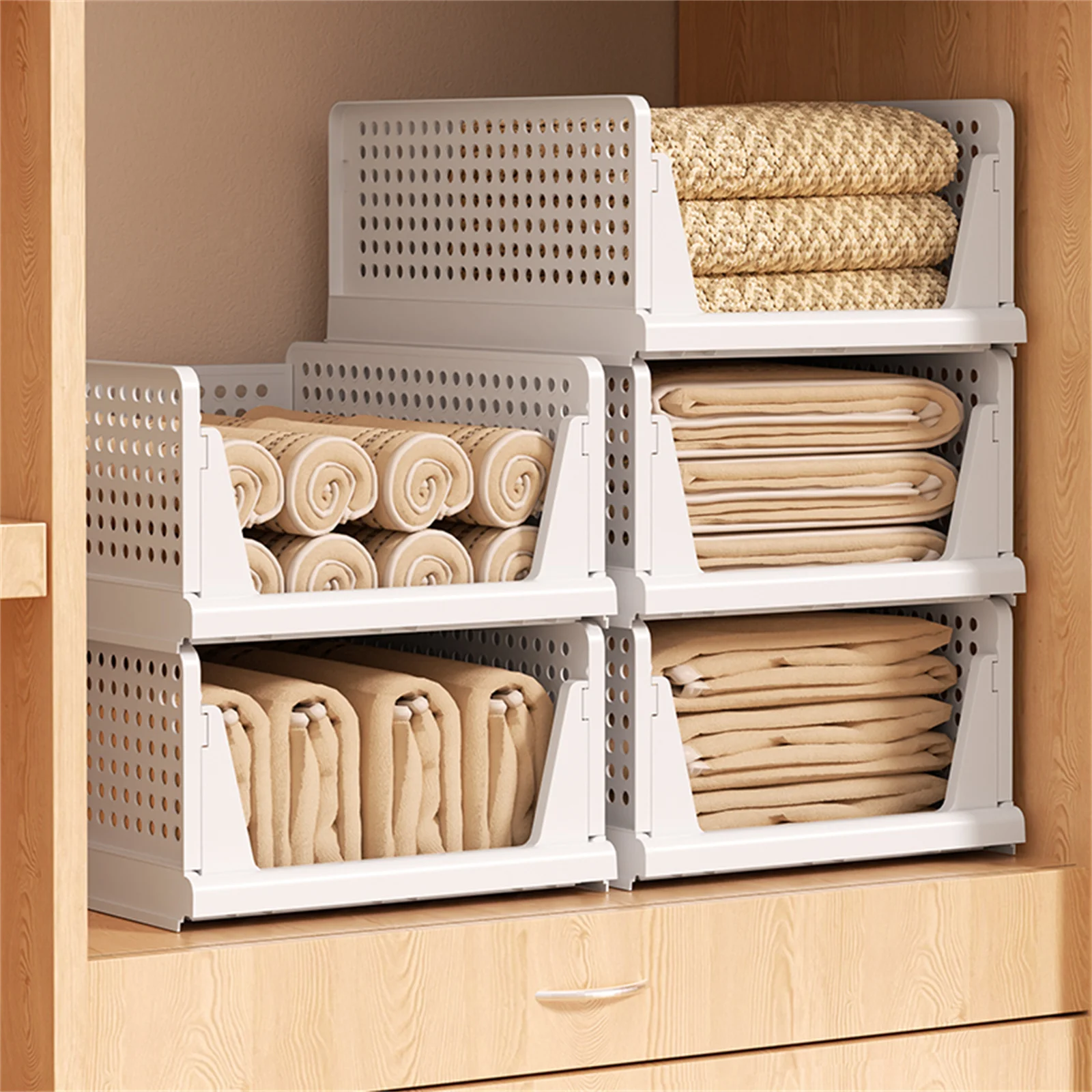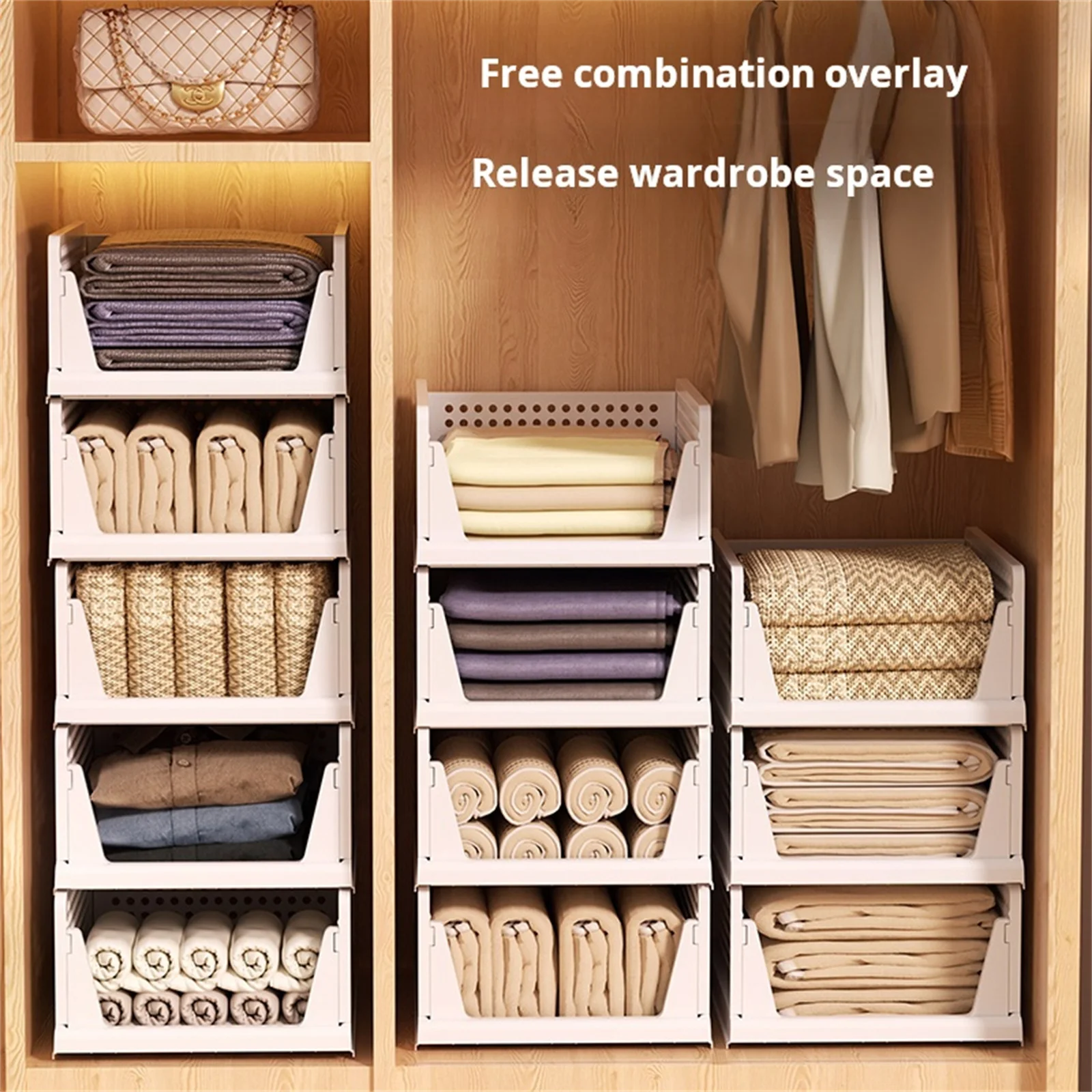 Clothes storage baskets can be stacked with drawer storage baskets, wardrobes, layered partitions, and pull-out folding storage