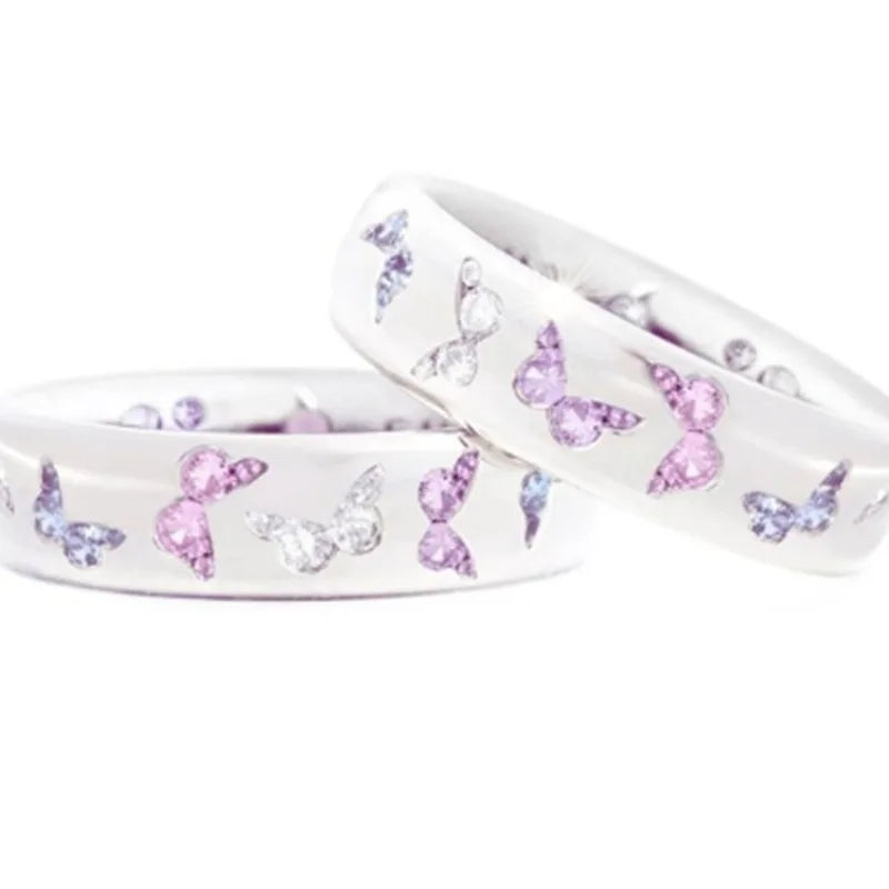 Colorful Butterfly Ring Wedding 925 Sterling Silver Plated Rings for Women Elegant Multicolor Zircon Ring Jewelry Girl Gift