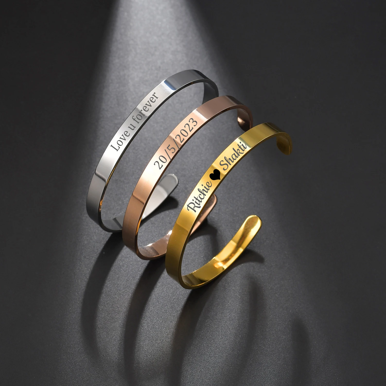 Customized Bracelets Engraving Name Stainless Steel Bracelets Accessories for Women Personalized Adjustable Bangle Jewelry Gift