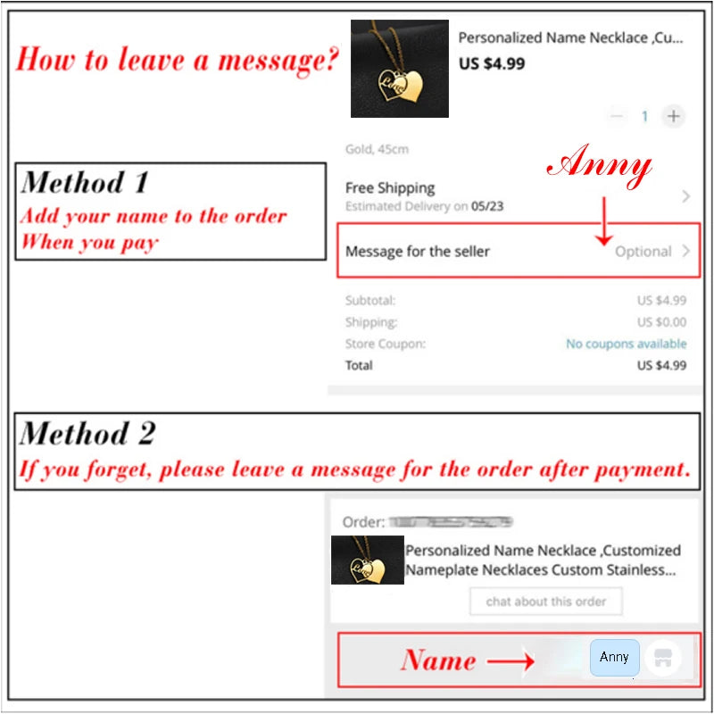 Leave your name or said wordsand font when you pay.(such as:Anny, font 5),If you do not offer the font type ,we will make as same as picture.