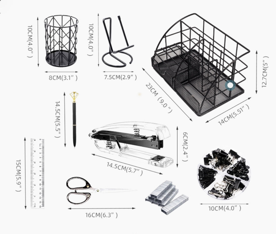 Desk Organizers Accessories Office Supplies Set Stapler, Pen Holder, Phone Holder, Scissors, Pen, Ruler, 30 Paper Clips, 22 Bind