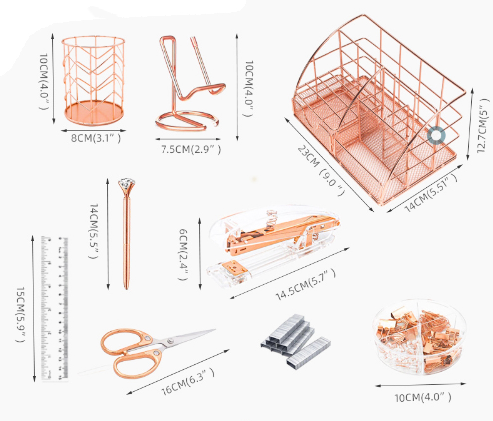 【Suitable for Many Occasions】This beautiful rose gold office stationery set is suitable for home, office, classroom, etc; Nice on desktop, living room, bedroom dresser, coffee table, shelf, etc. Can help to keep the desktop tidy and find something quickly in office desks, study desk or even a make-up desk.