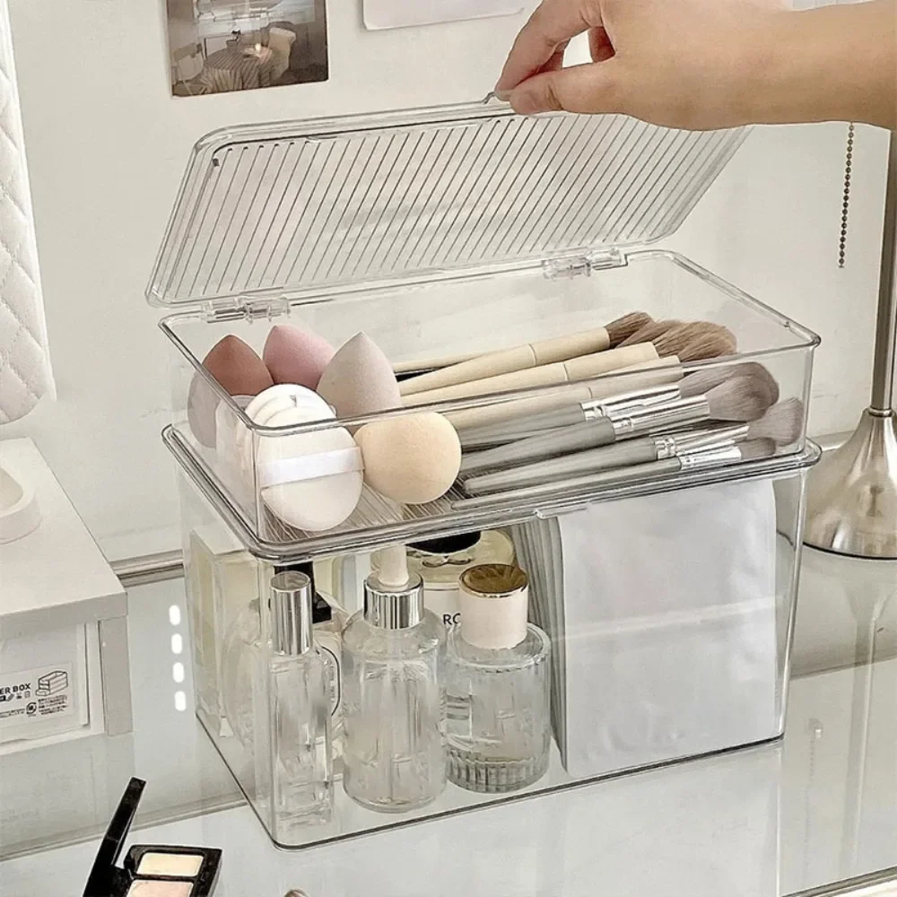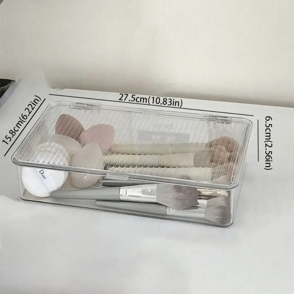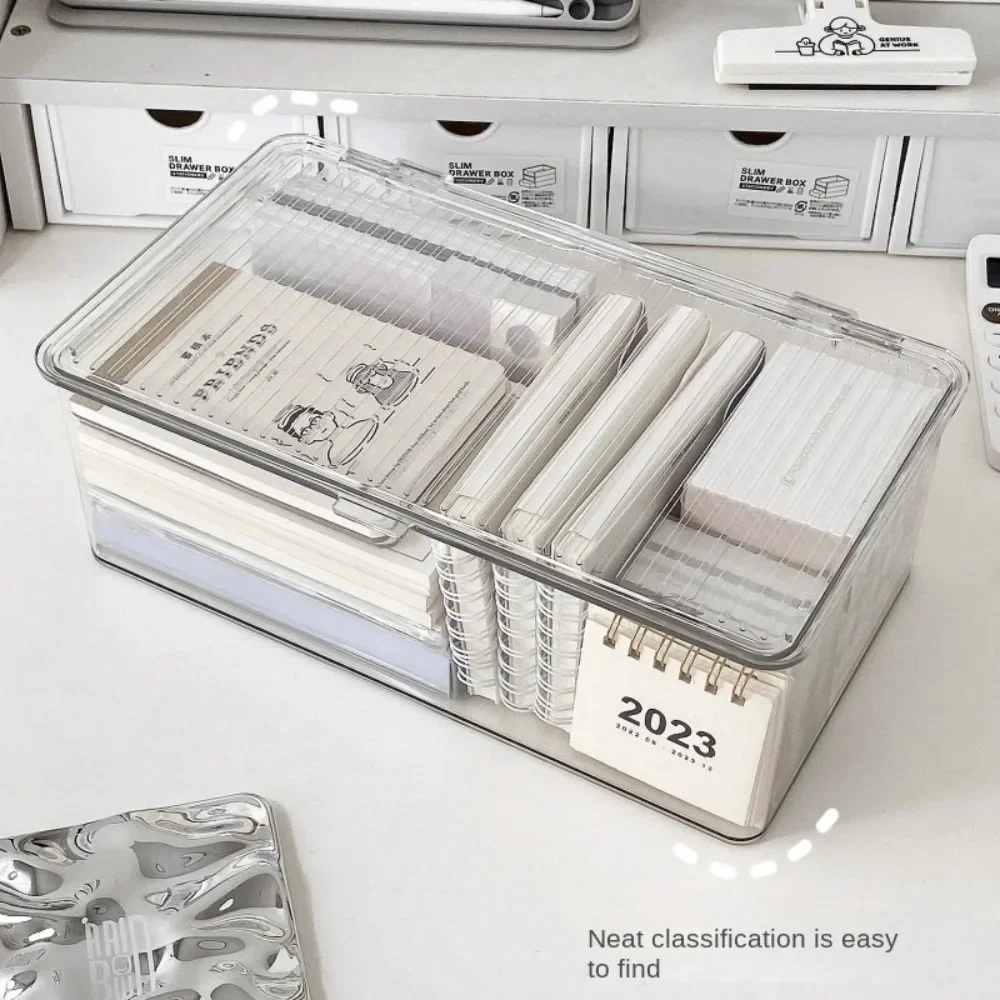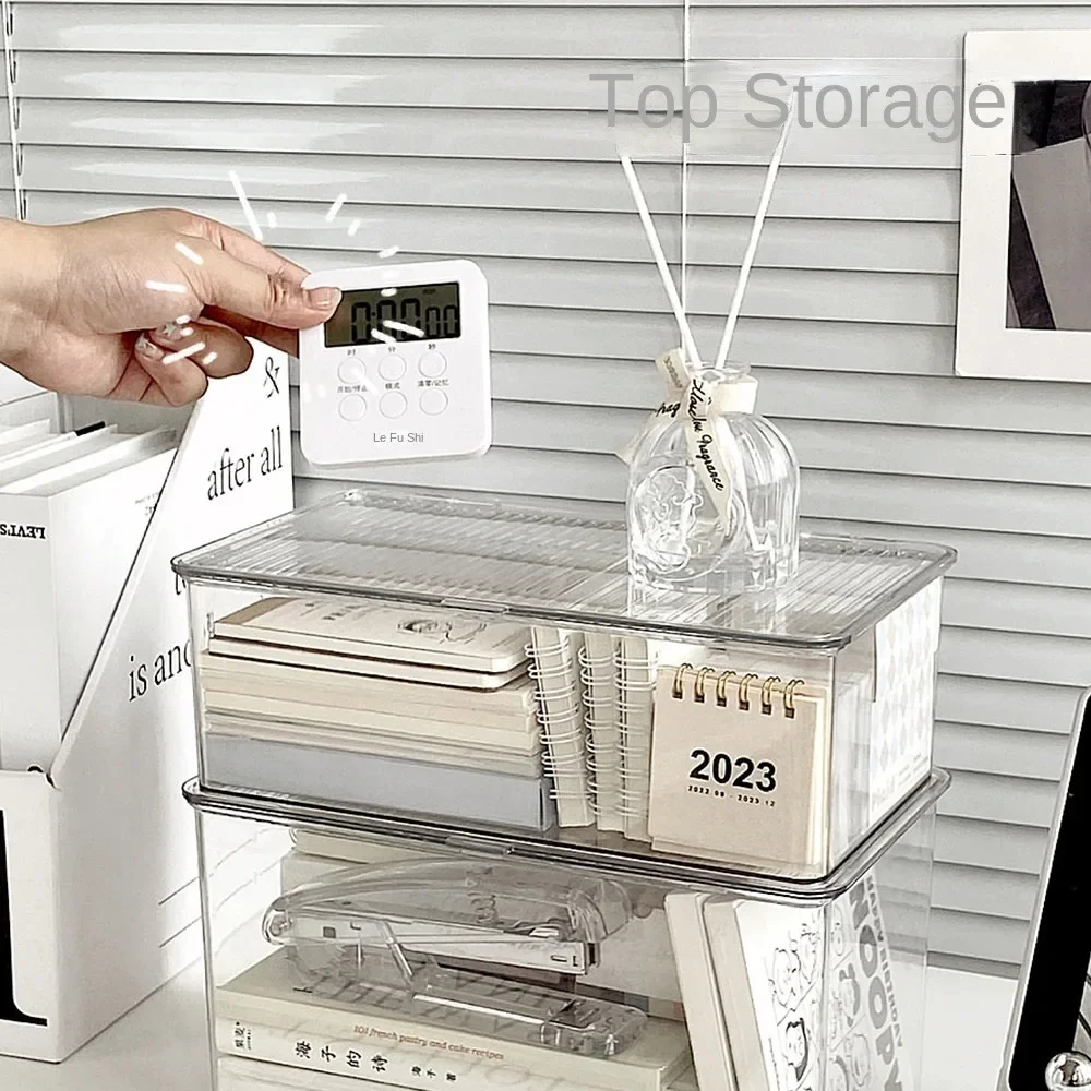 Desktop Storage Box Large Capacity with Lid Cosmetic Organizer Box Transparent Office Supplies Book Document Storage Box
