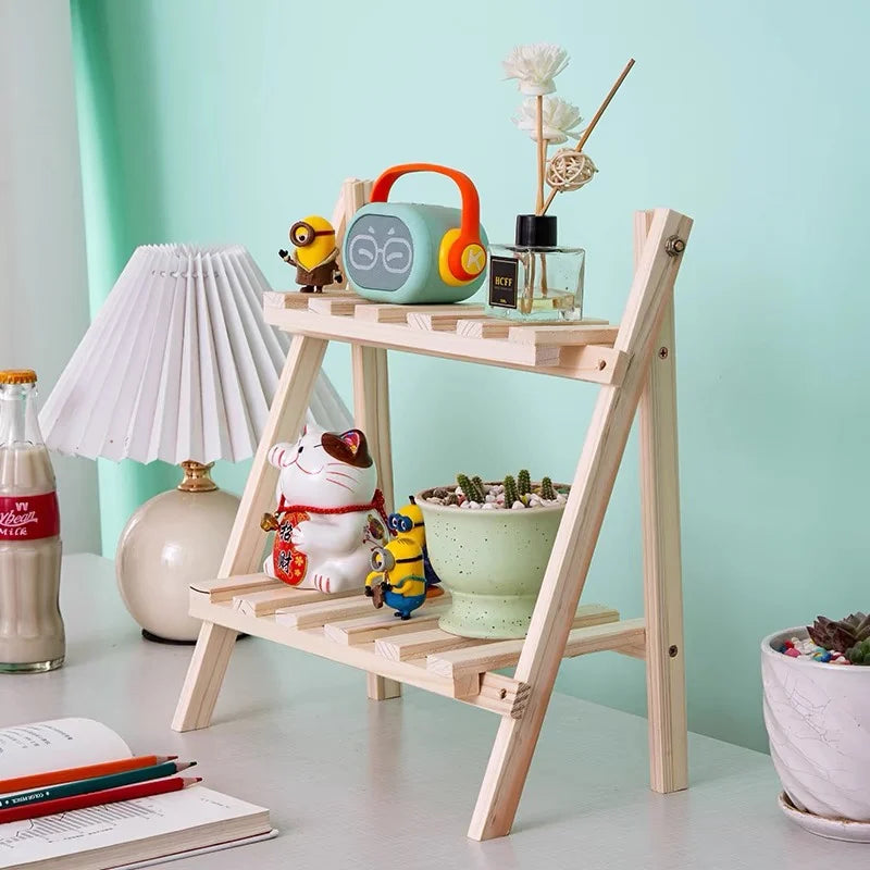 Desktop Storage Wooden Rack Double-Layer Simple Folding Corner Shelf Multifunctional Heavy-Duty Organizer Decoration Bedroom