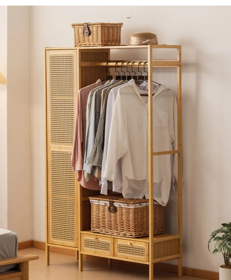 Display Wardrobe Single Sliding Door Wardrobe Closet Clothes Storage Cabinet Bedroom Room Set Wooden Locker Coat Household Items