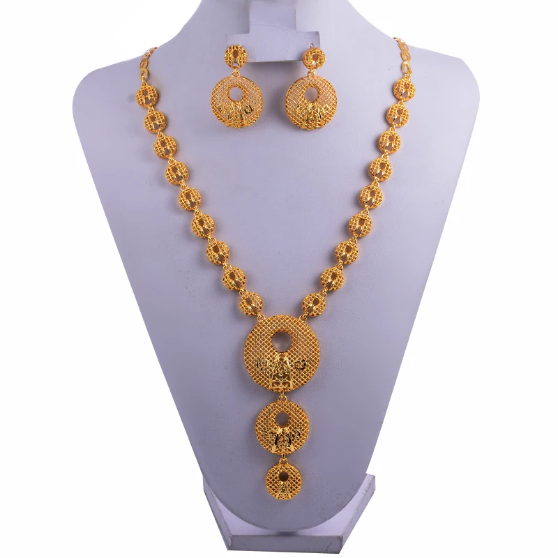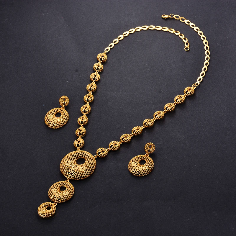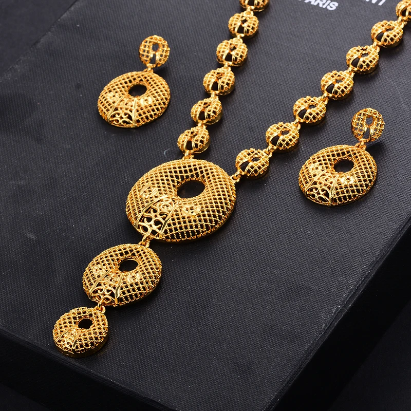 Dubai Gold Color Earrings/Necklaces/Jewelry Sets for Women African/Nigeria Jewellery Gifts Band Gift Box