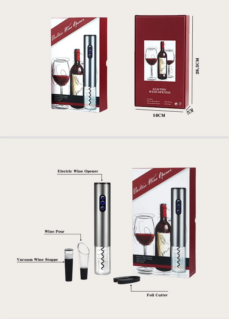 Electric Wine Bottle Opener Set Automatic Corkscrew with Stopper Pourer and Foil Cutter Red Wine Accessories Gift Box