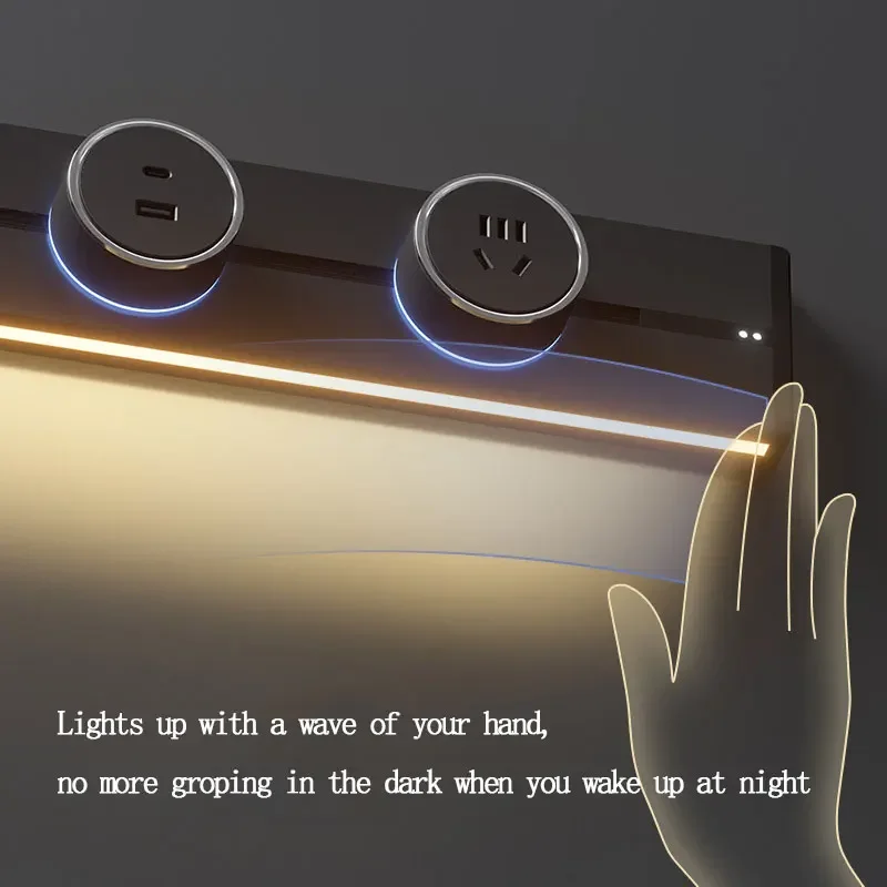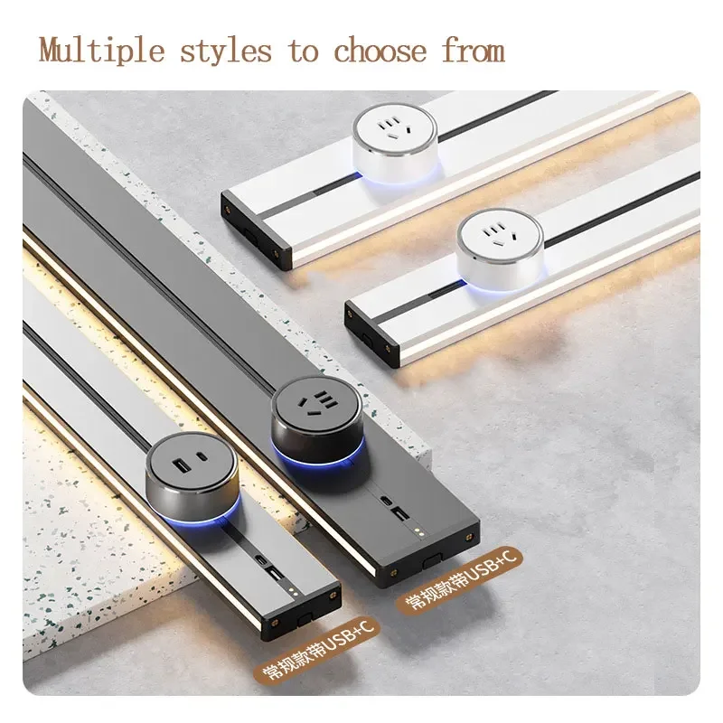 EU US Universal Home Room Movable Power Rail Sliding Track Socket With LED Human Body Induction Light Desktop Mobile Socket