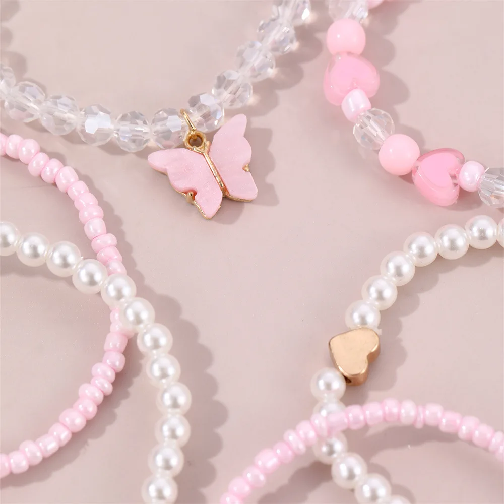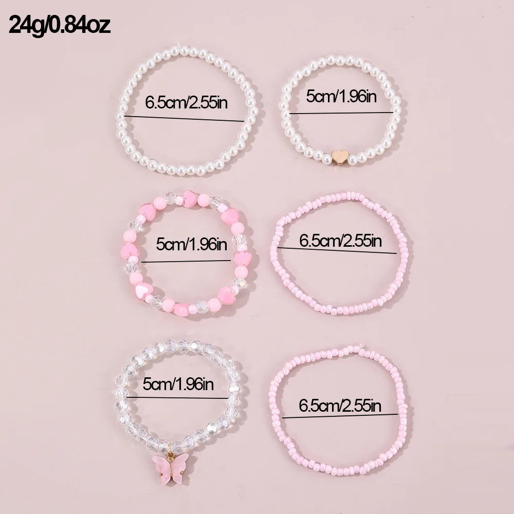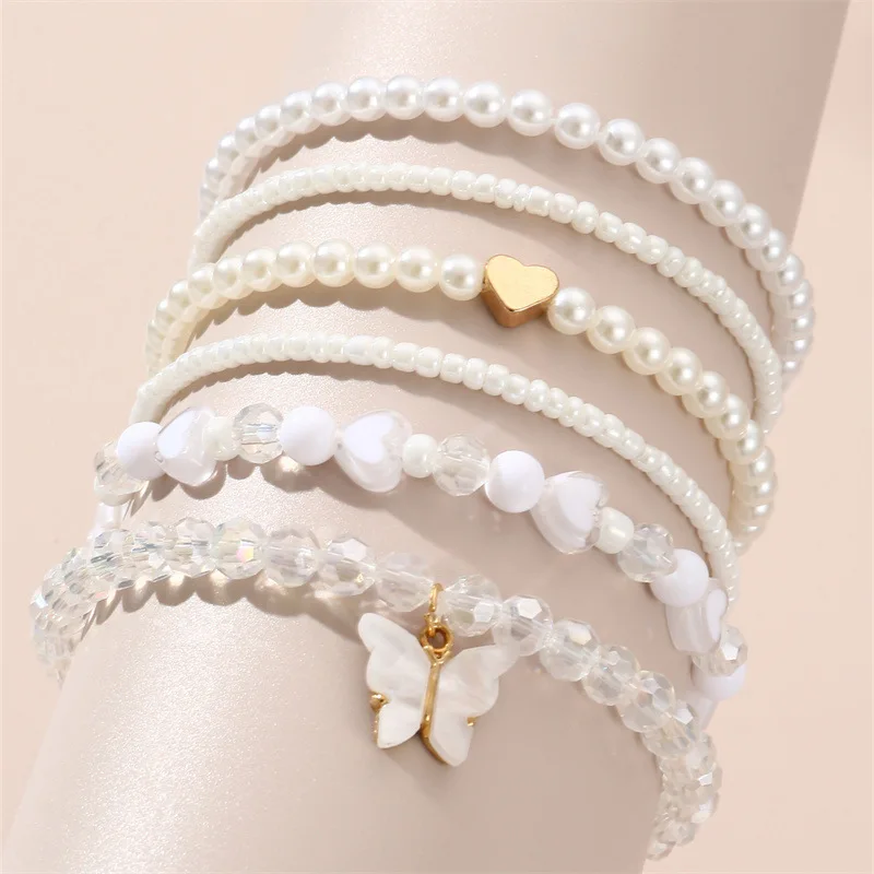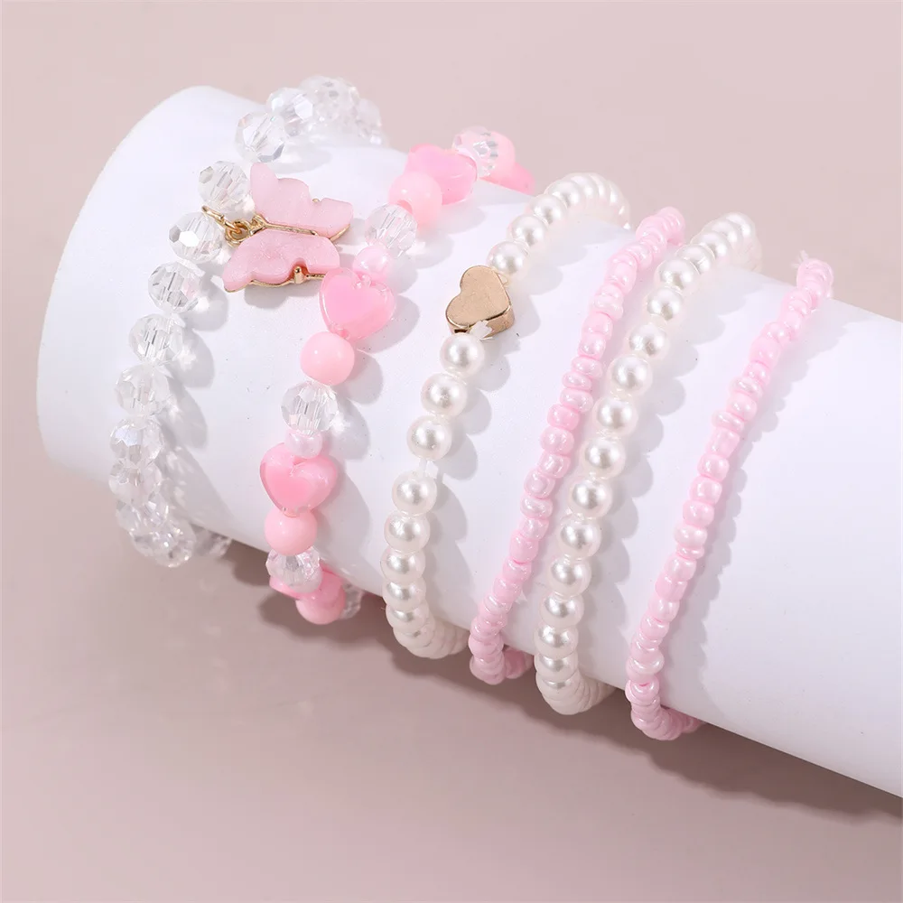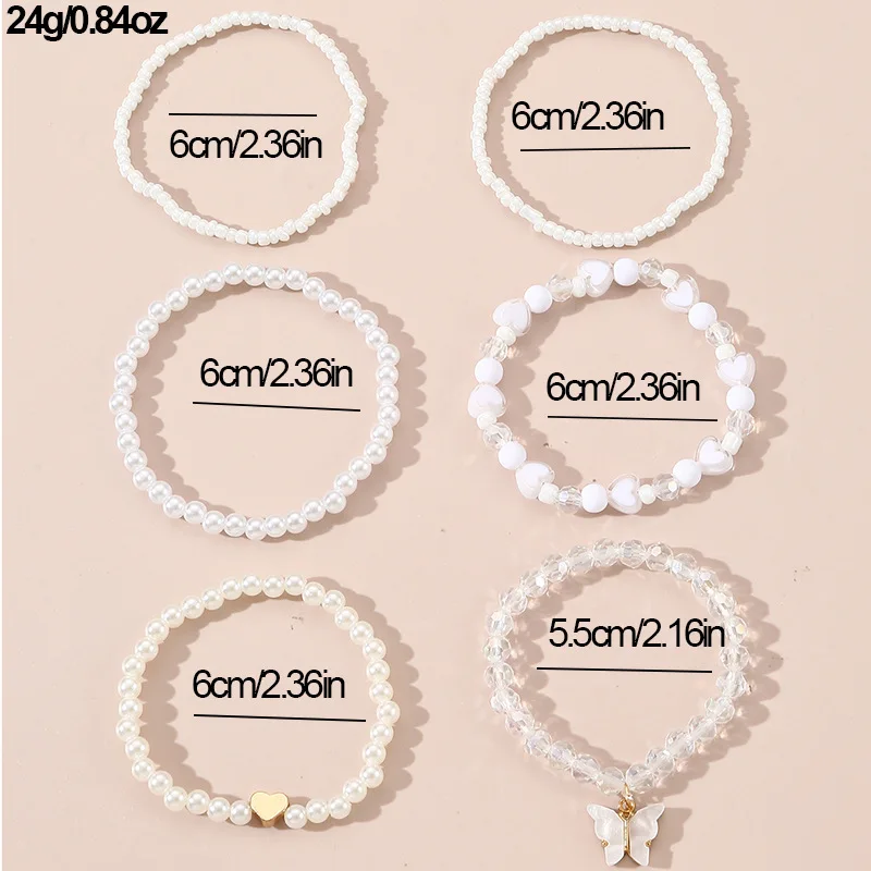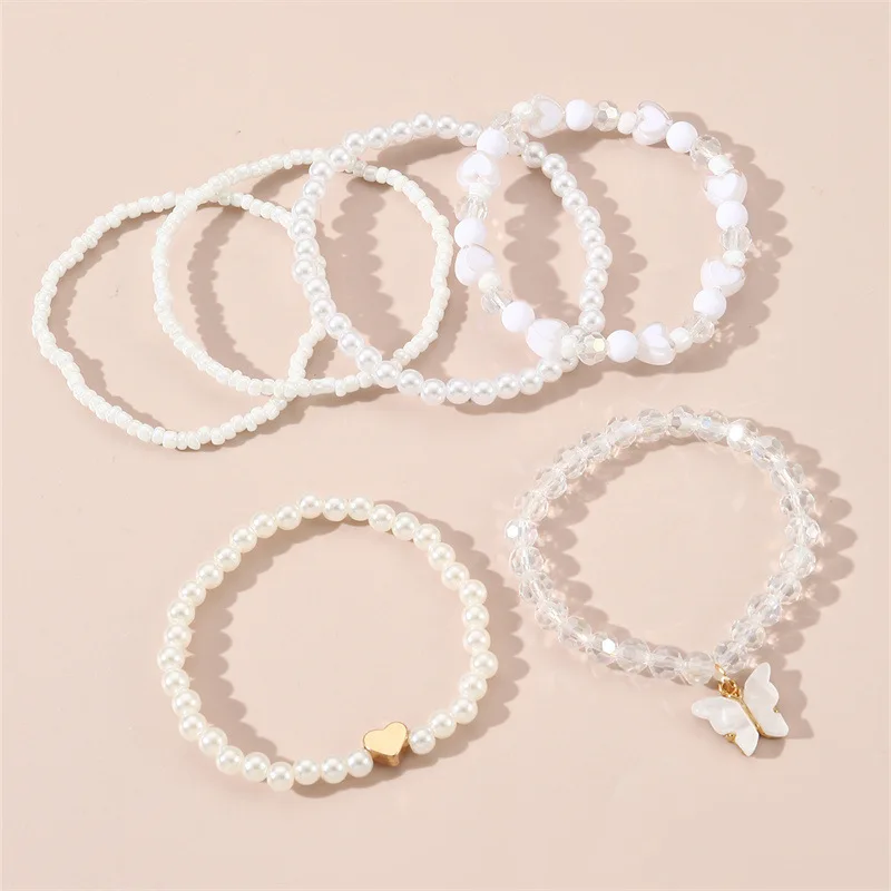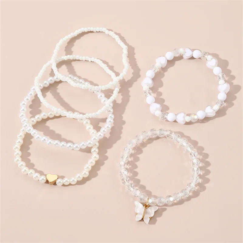 European and American Bracelet Simple Design Sweet Cute Pearl Love Beaded Butterfly Pendant Bracelet 6 Pieces suit