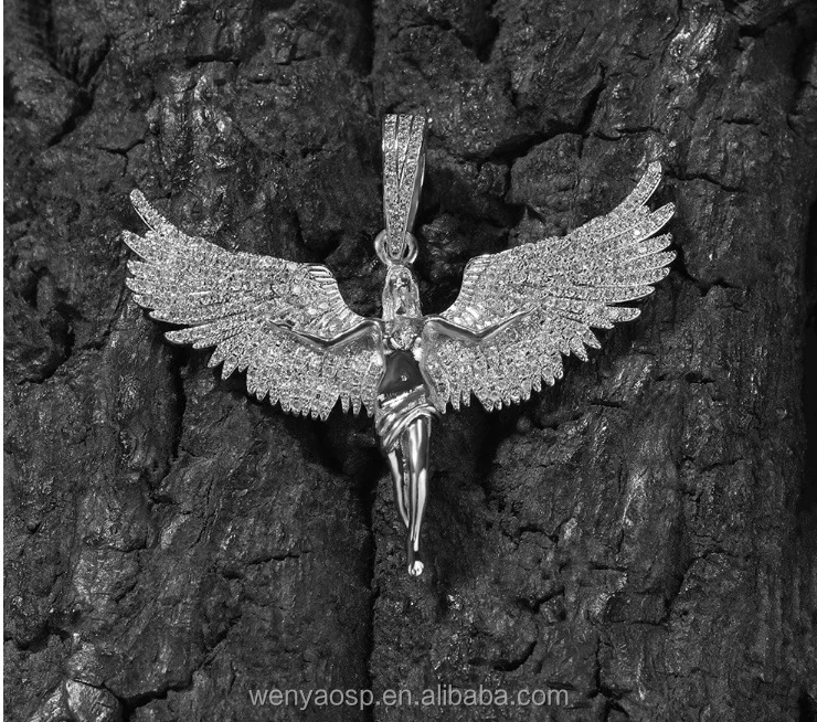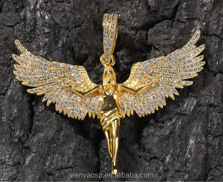 European and American retro unisex style gold diamond angel wings male and female rap hip hop necklace |