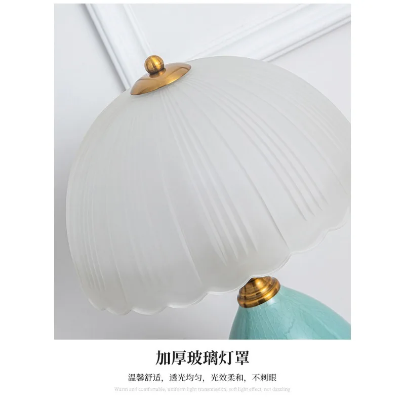 European Style Table Lamp Retro Pastoral Style Ceramic Glass Led Lamp Study Bedroom Decoration Stepless Dimming Bedside Lamp