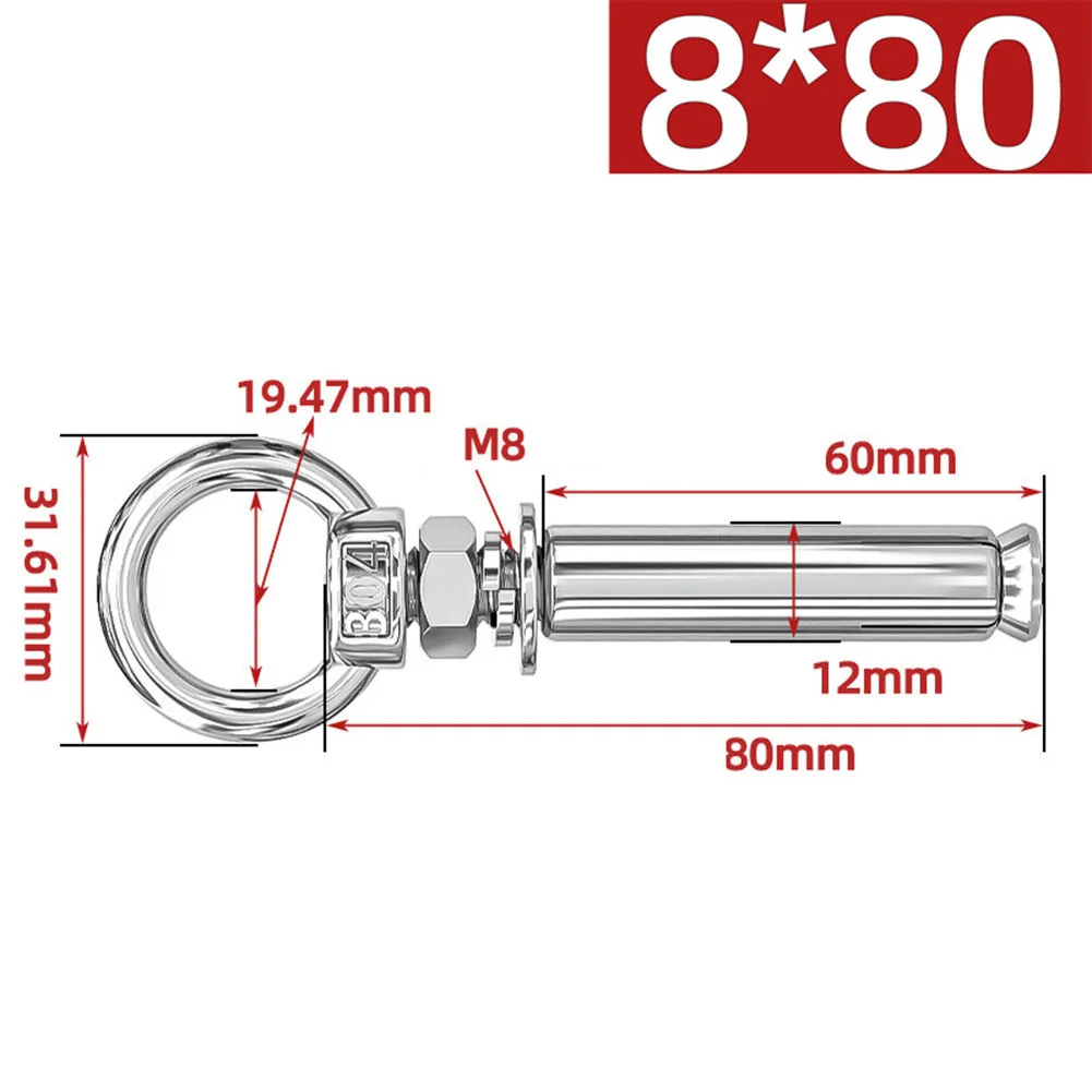 Eye Screws 304 Stainless Steel Construction Sites 100mm 15 Sizes Available Complete Size Range Lengthened Design