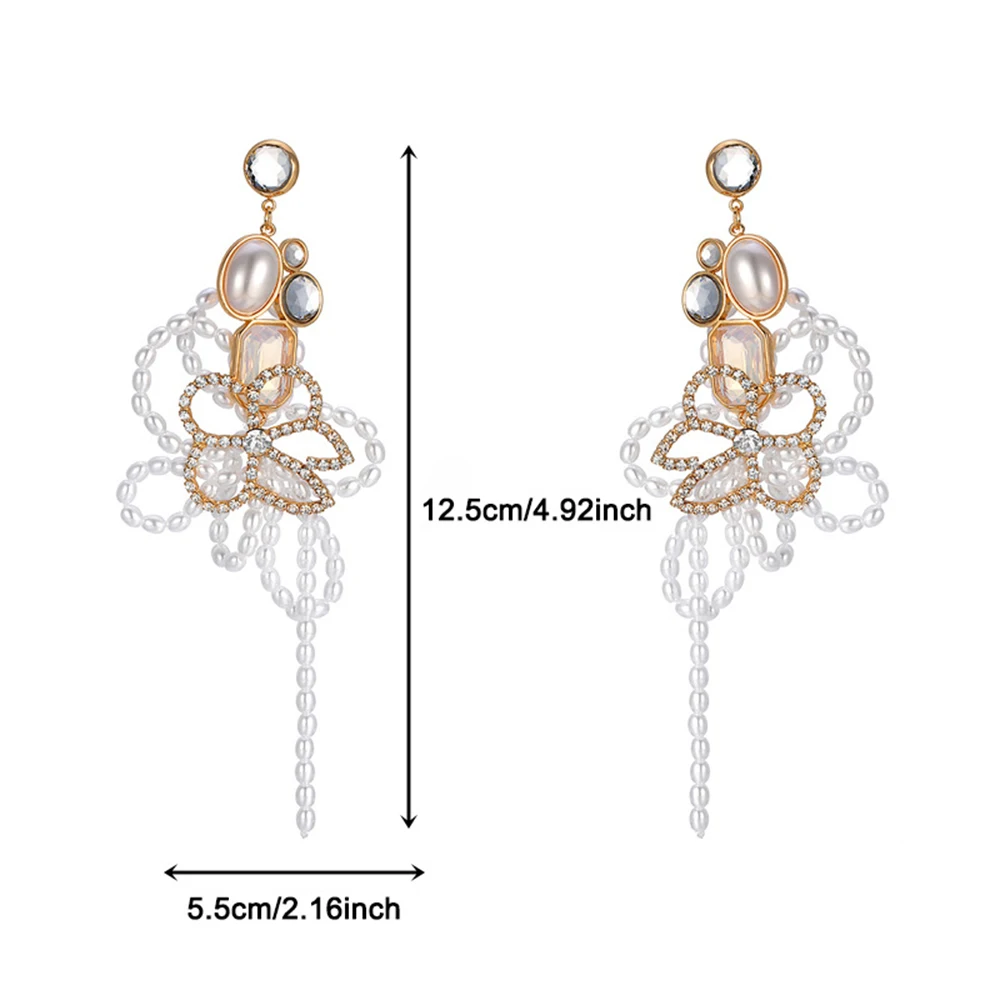 Fairy Beauty White Hollow Flower Necklace Female Dream Wedding Exaggerated Bow Pearl Beaded Earrings Jewelry