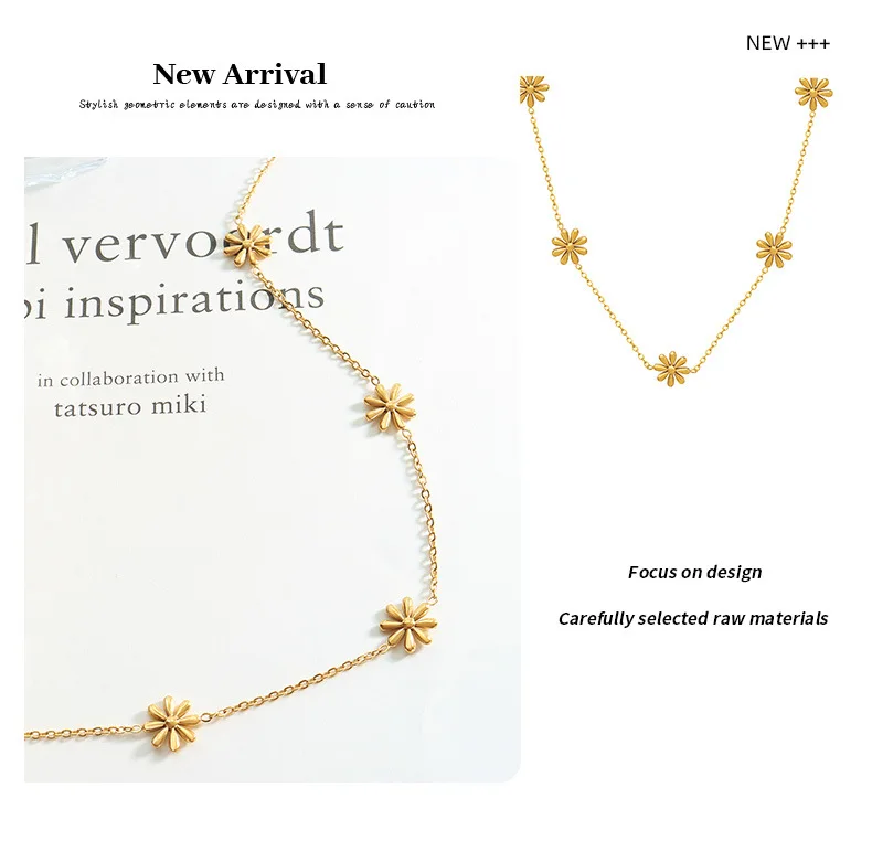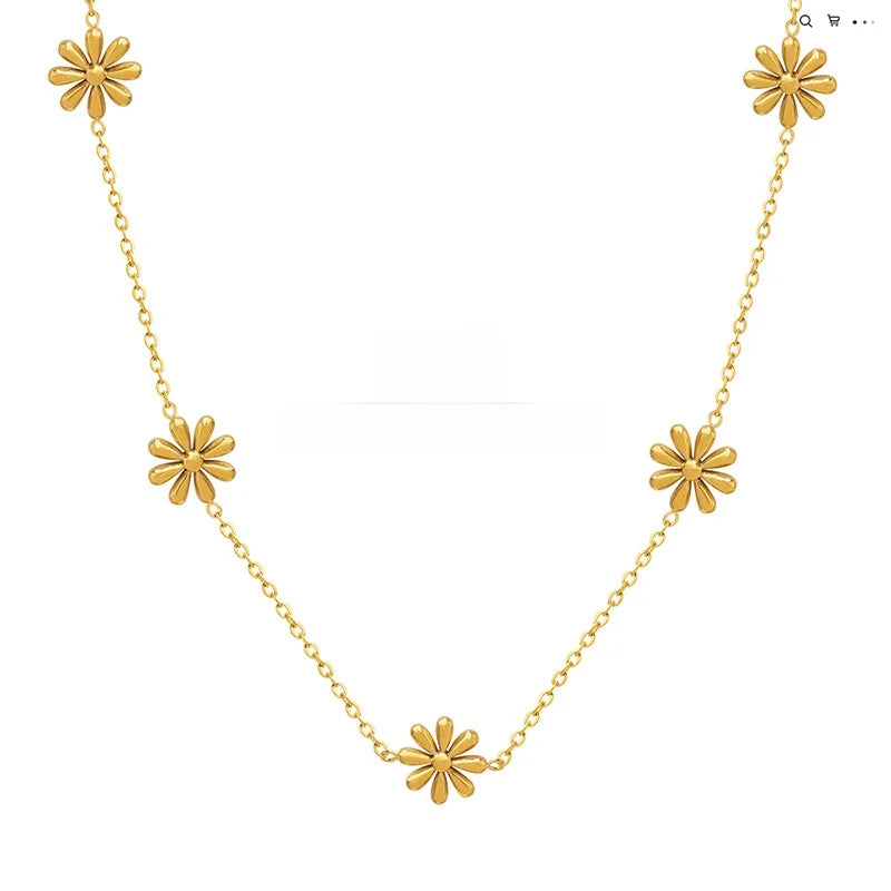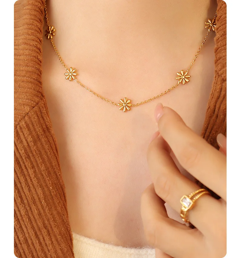 Fairy Chic Daisy Design Titanium Gold Plated Necklace No Fade Influencer Style