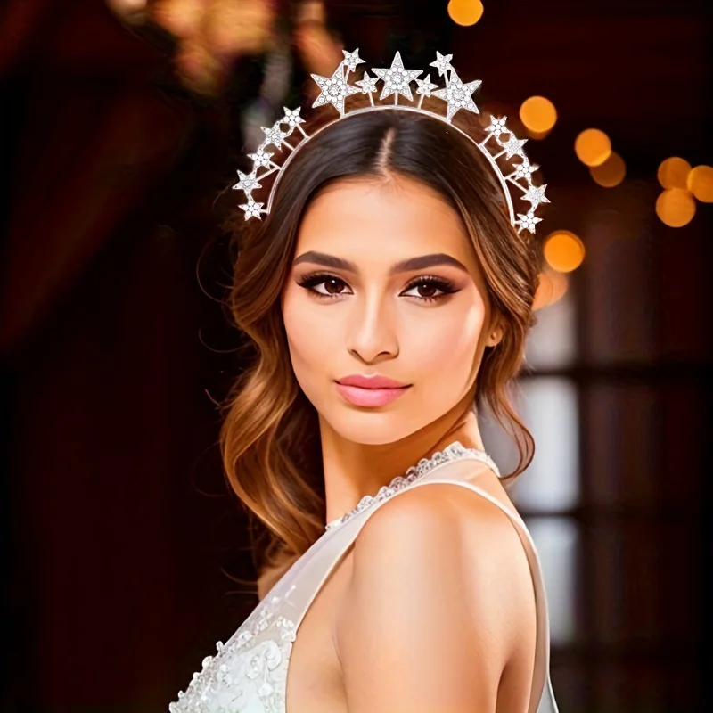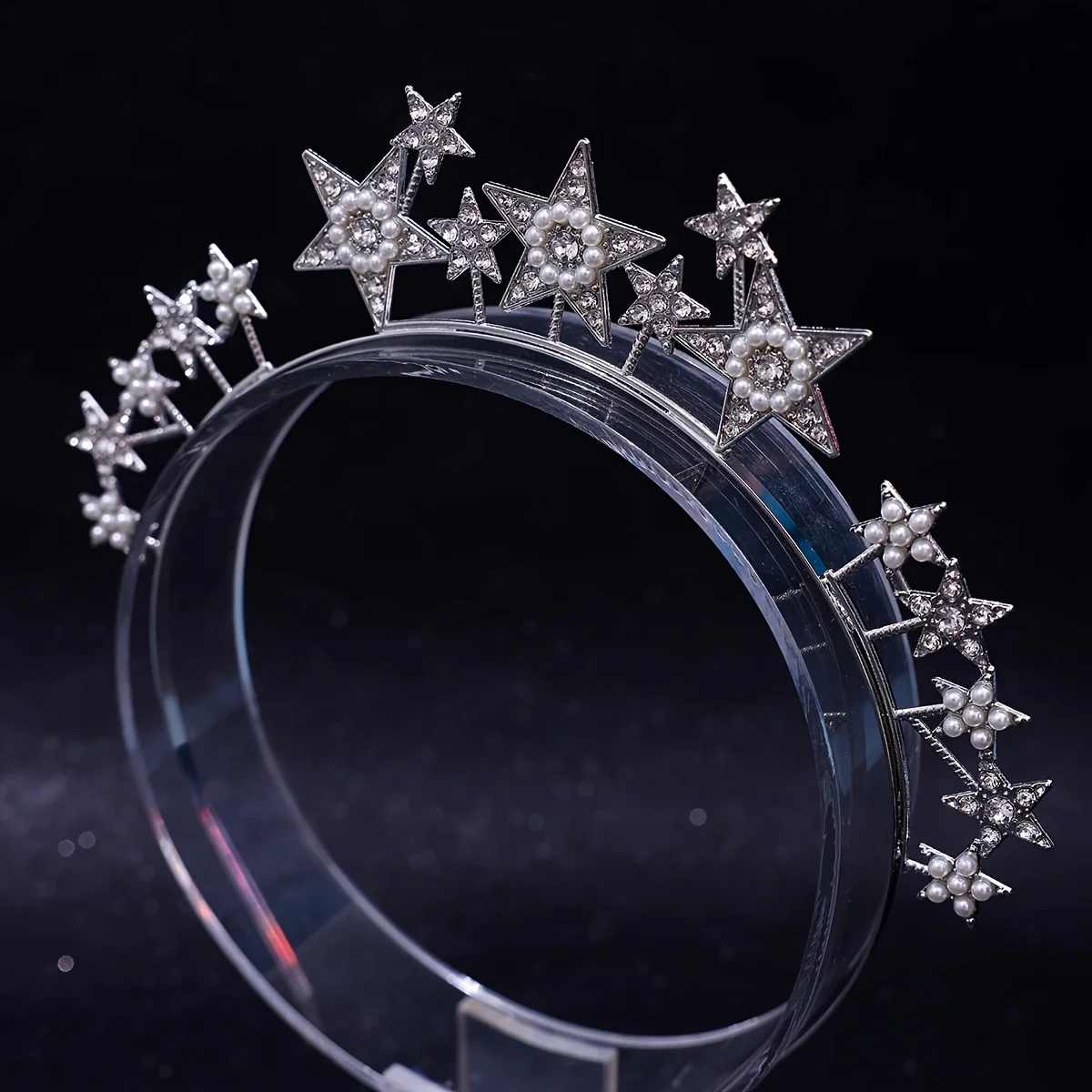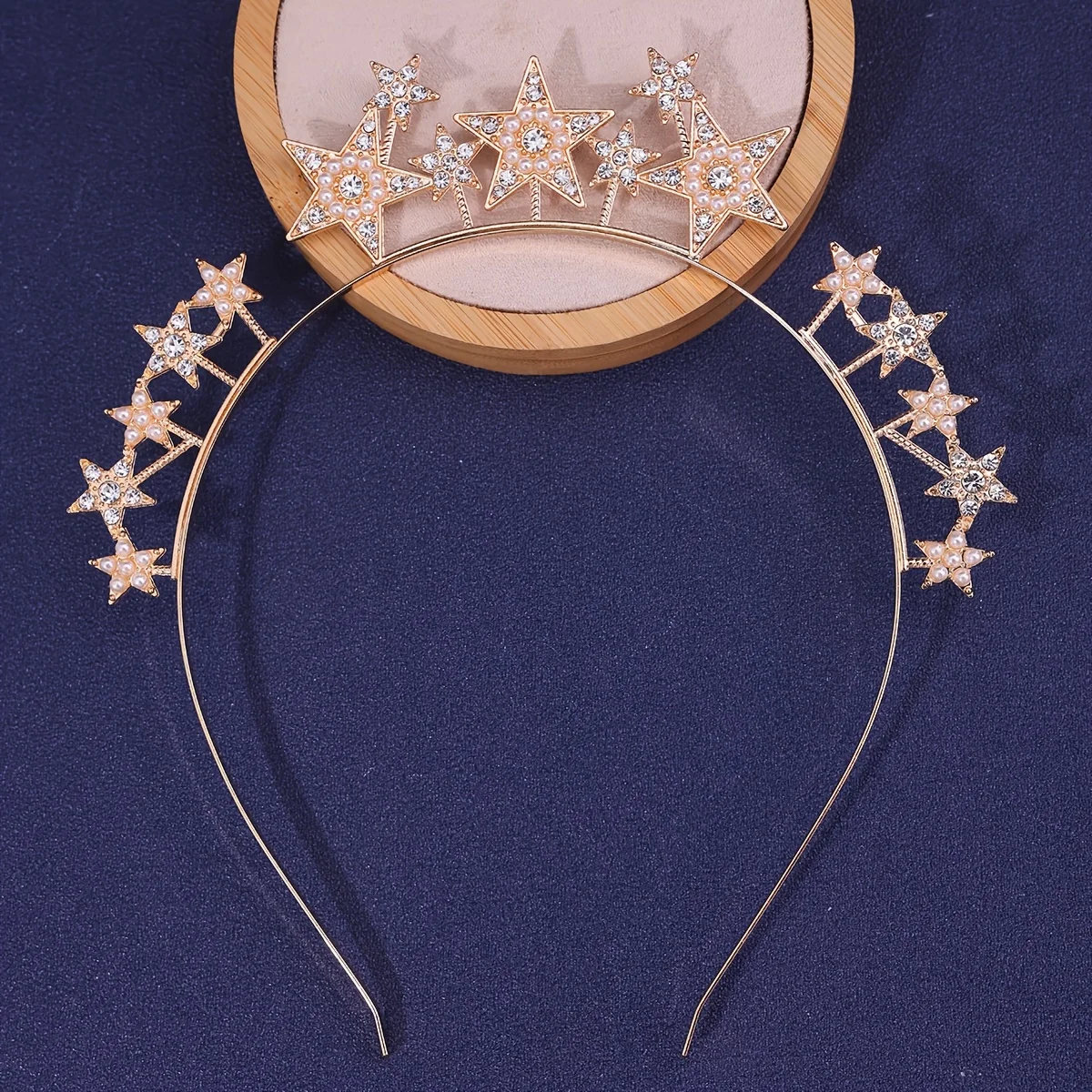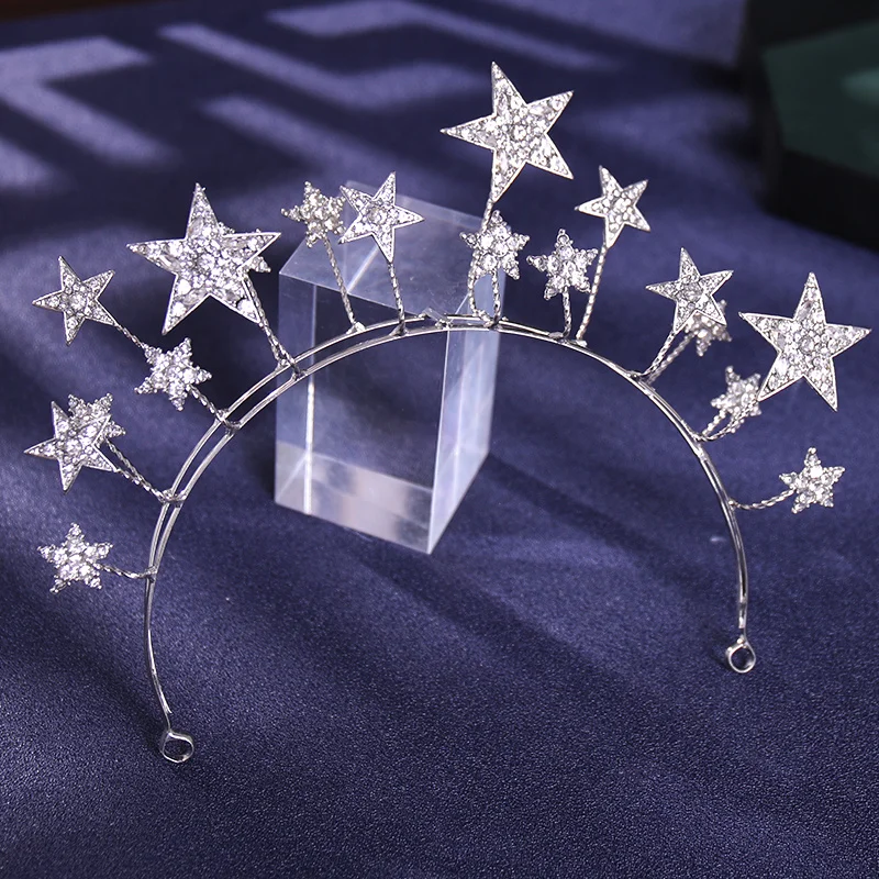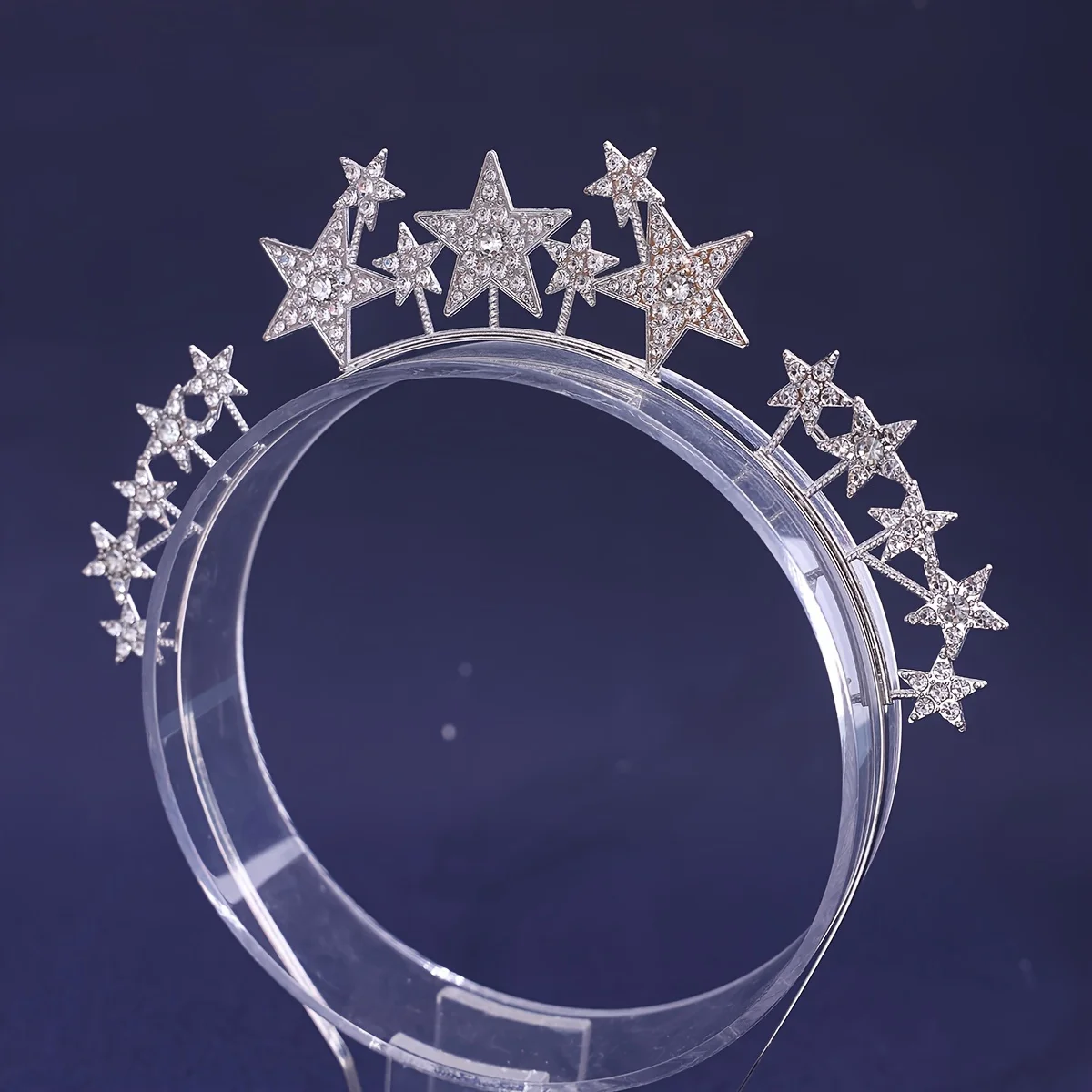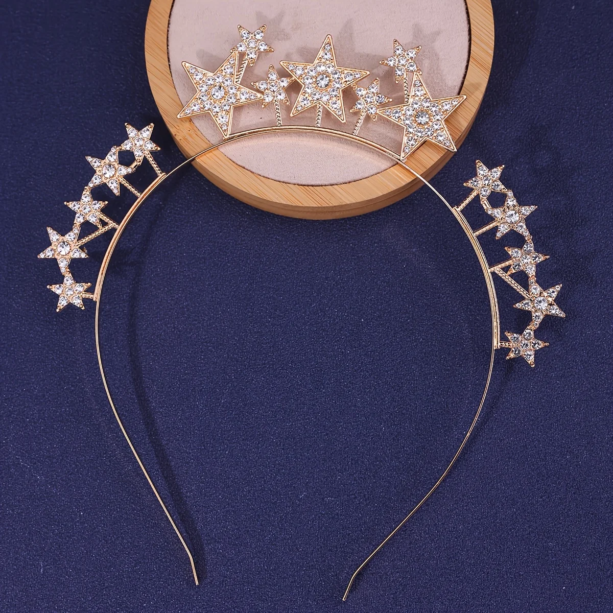 Fairy Crown Cute Crystal Bridal Hair Tiara Wedding Hair Accessories Rhinestone Hairband Star Hair Hoop Headpieces Head Jewelry