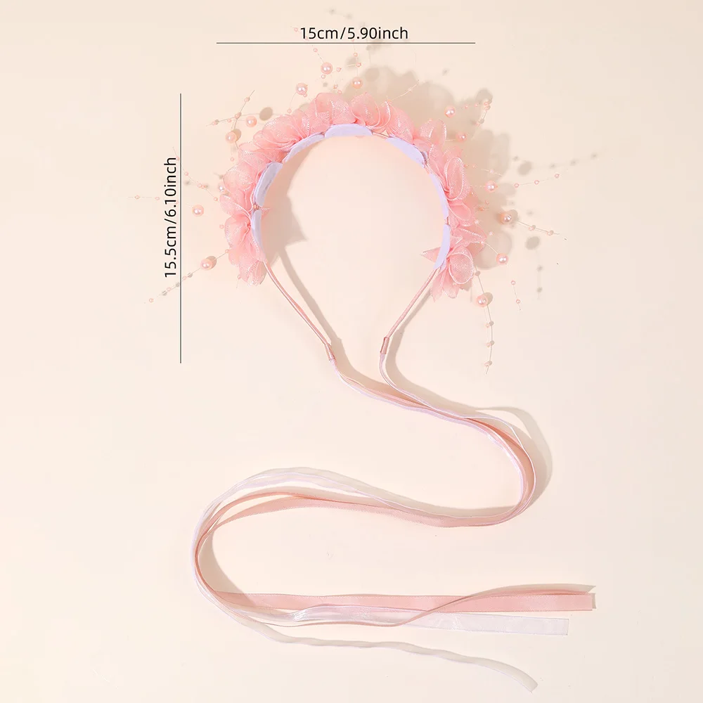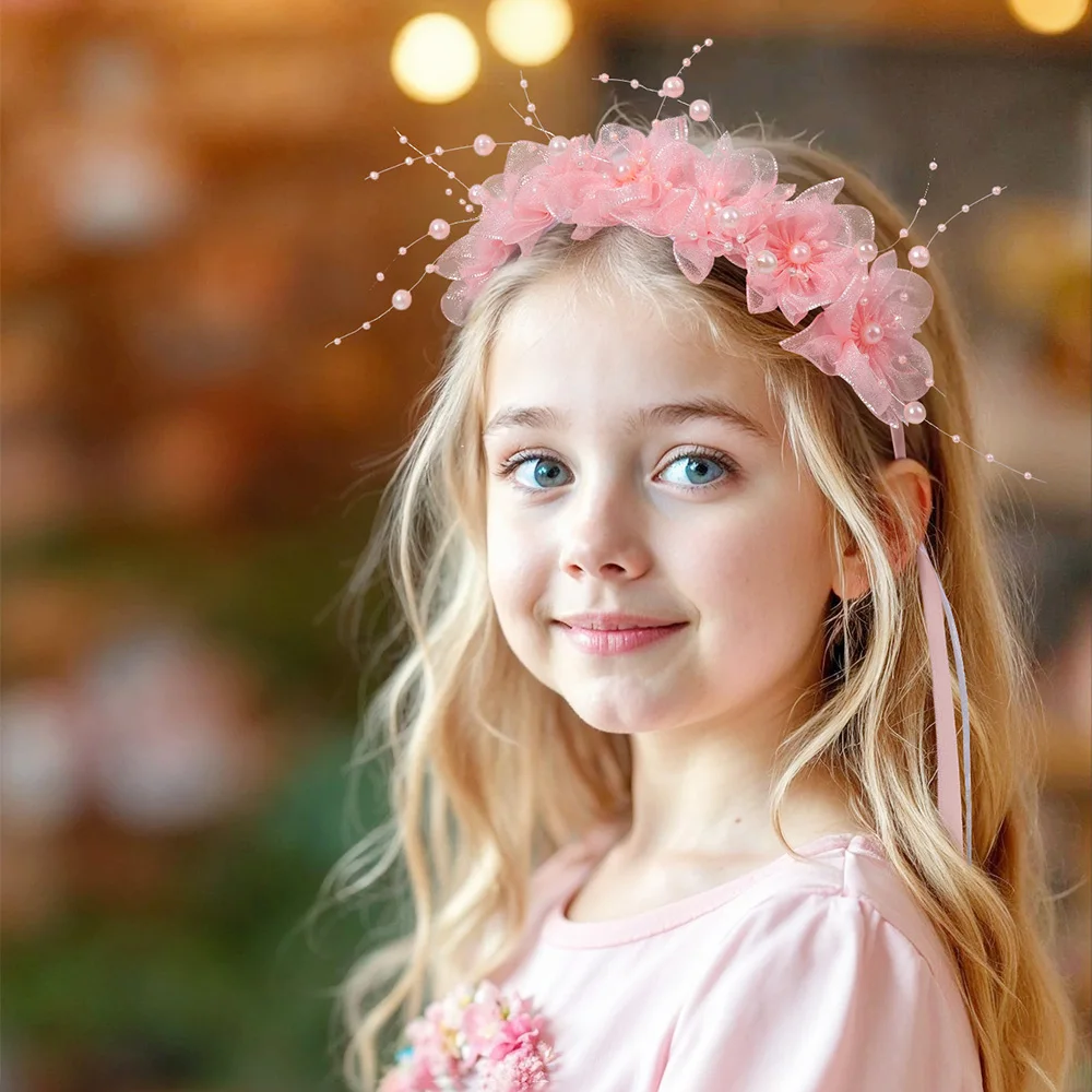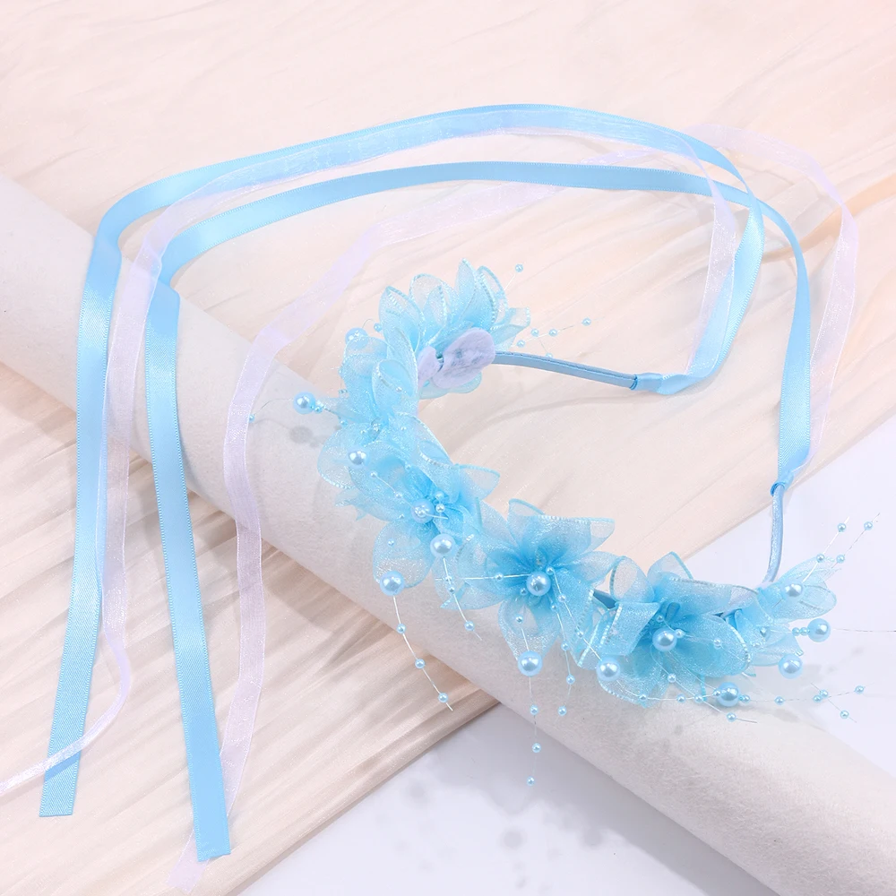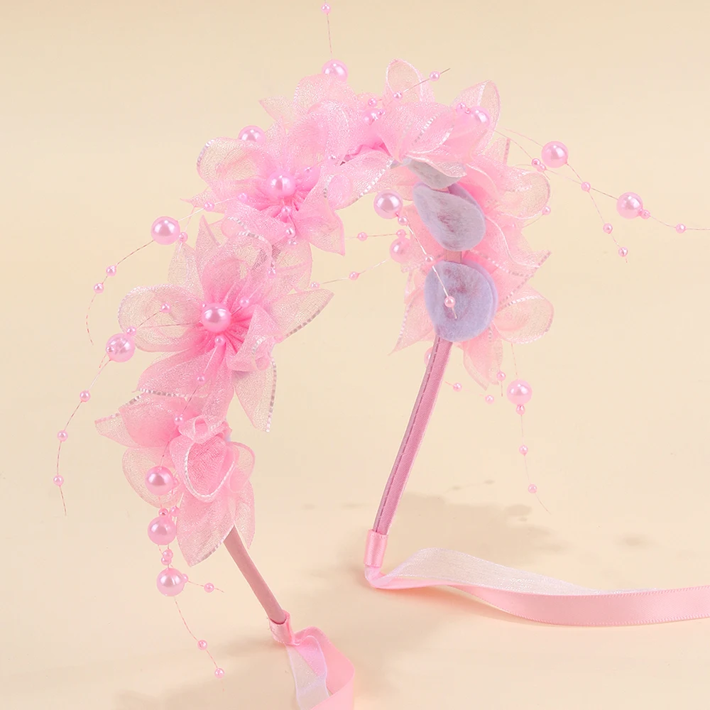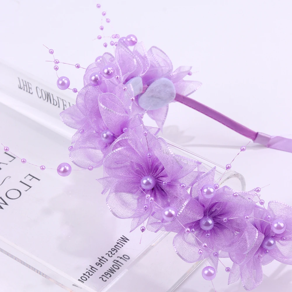 Fairy Flower Headband Sweet Lovely Girl Lace Floral Pearls Hair Hoop For Princess Wedding Birthday Headwear Accessories Gifts