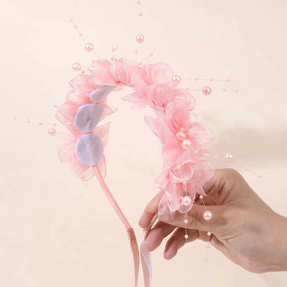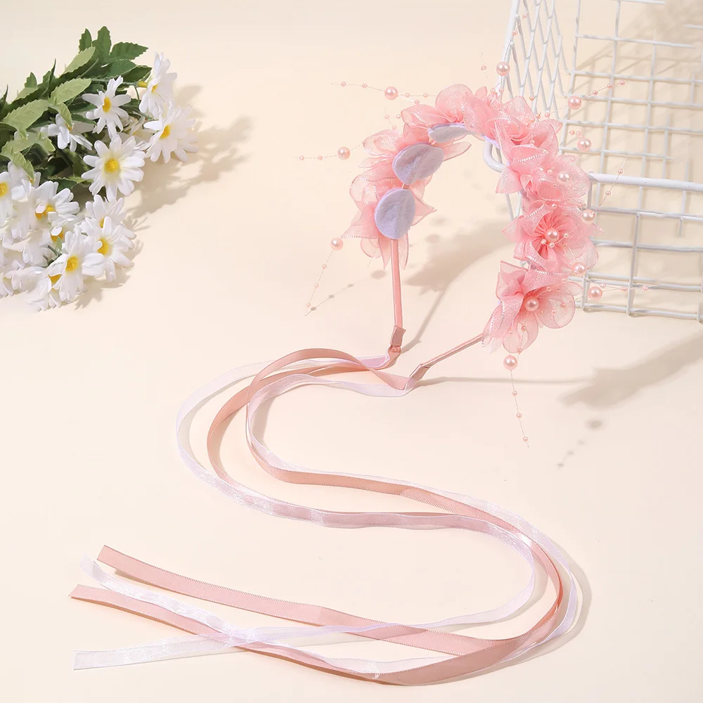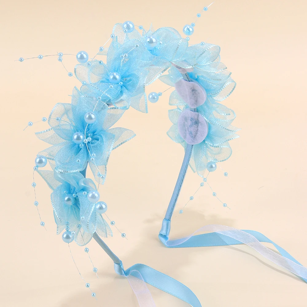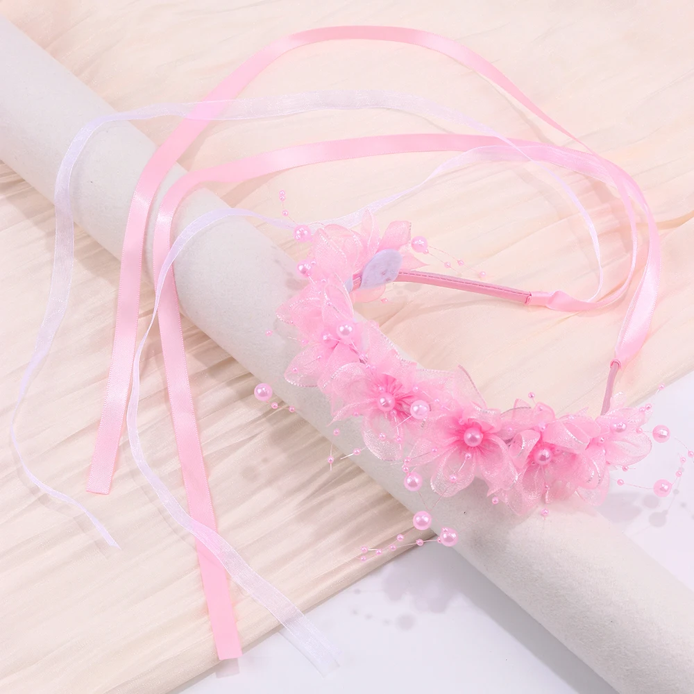 Fairy Flower Headband Sweet Lovely Girl Lace Floral Pearls Hair Hoop For Princess Wedding Birthday Headwear Accessories Gifts
