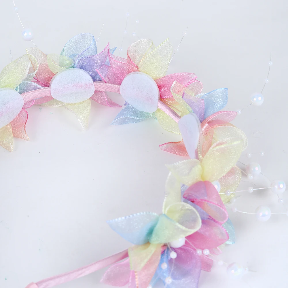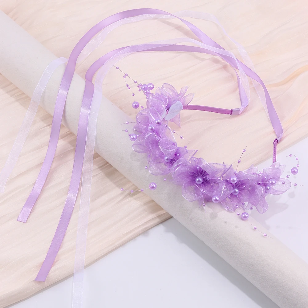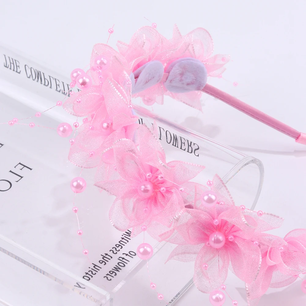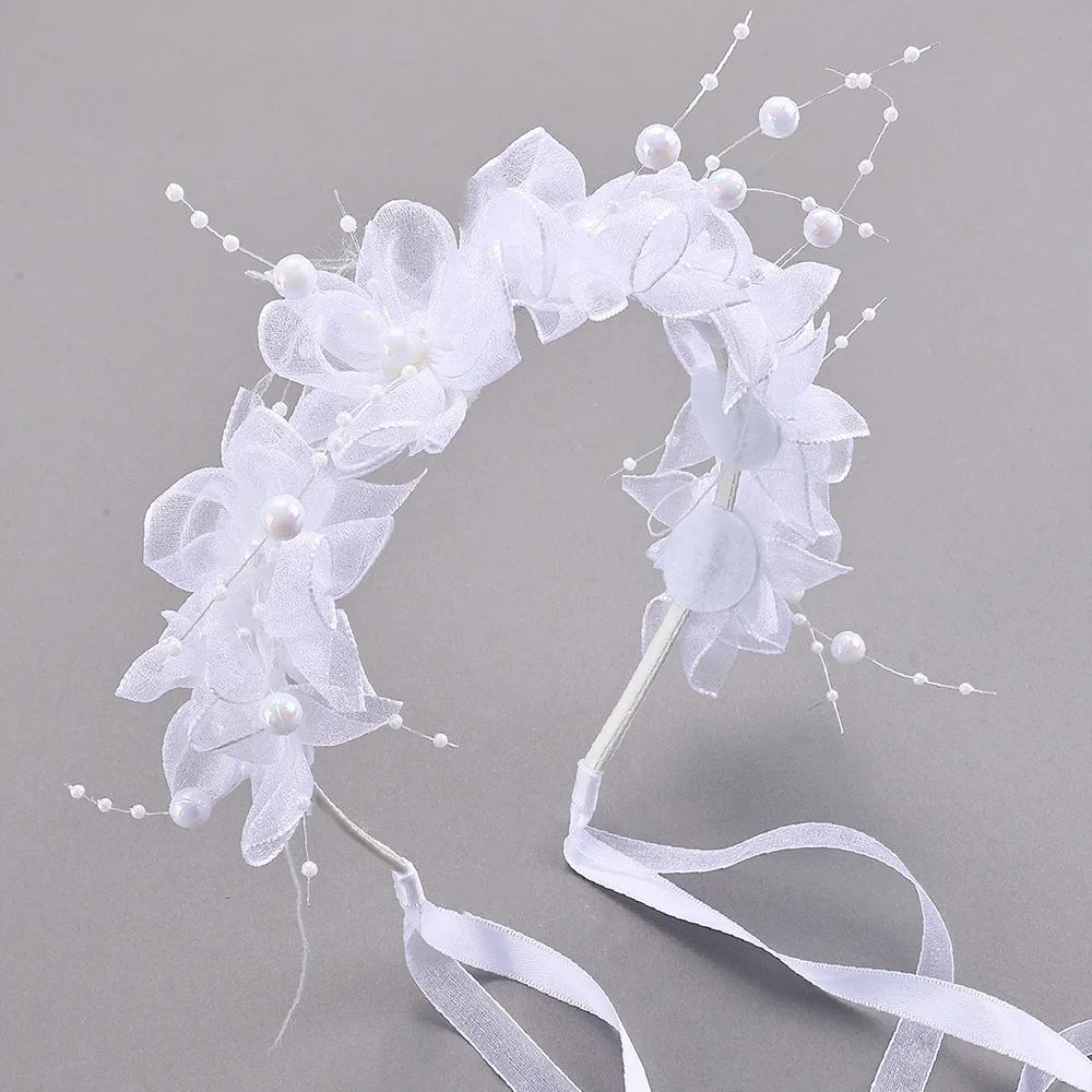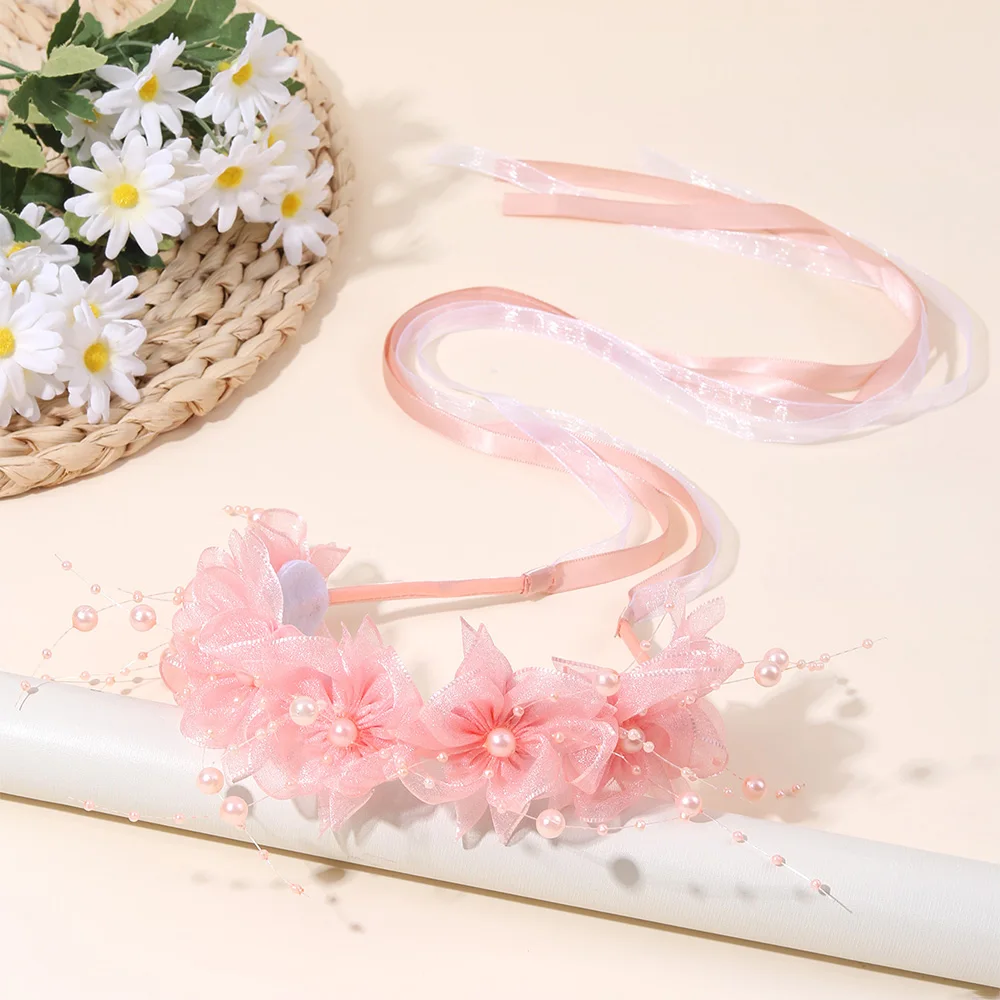 Fairy Flower Headband Sweet Lovely Girl Lace Floral Pearls Hair Hoop For Princess Wedding Birthday Headwear Accessories Gifts