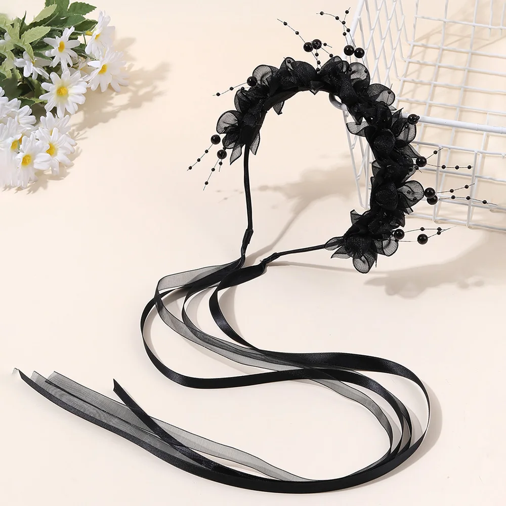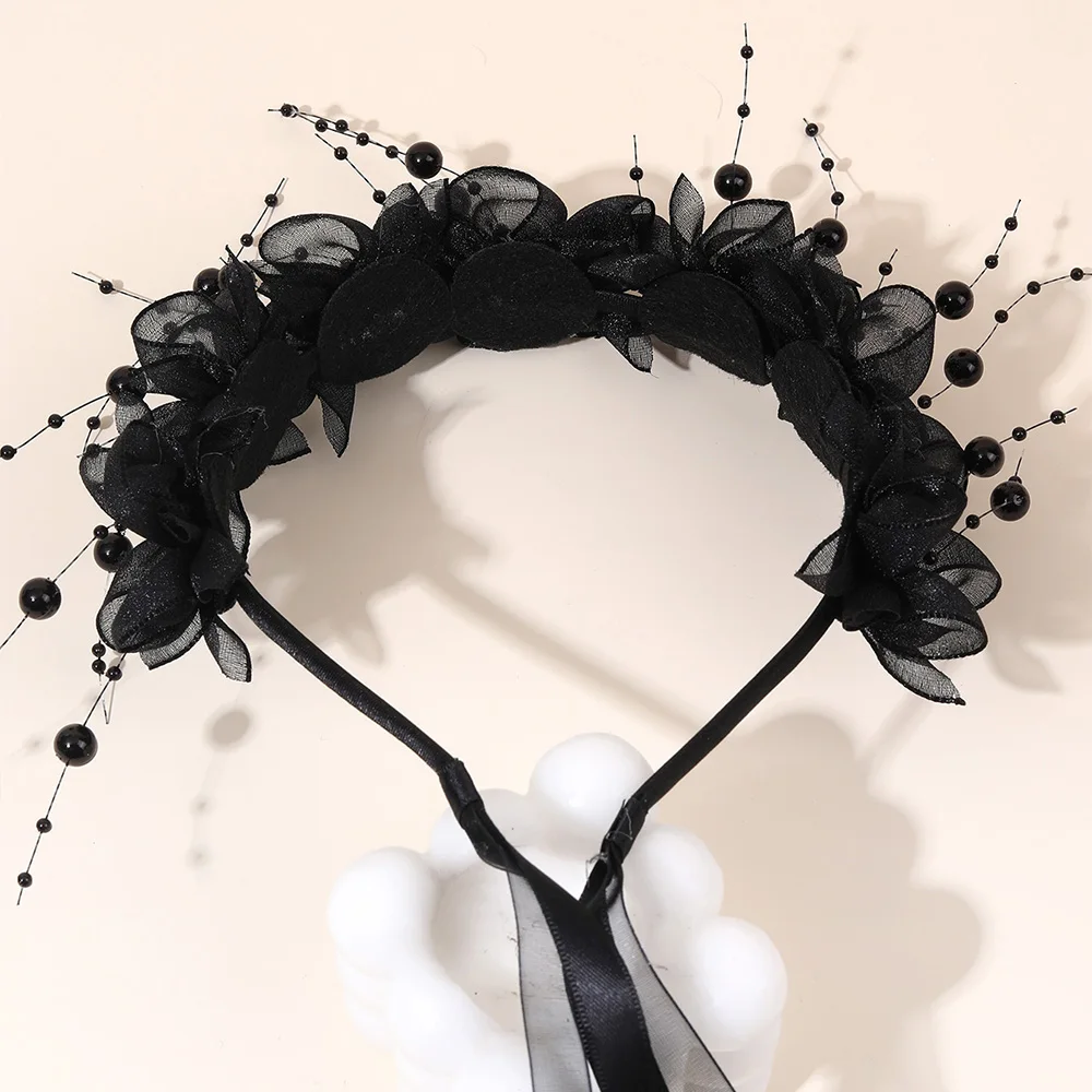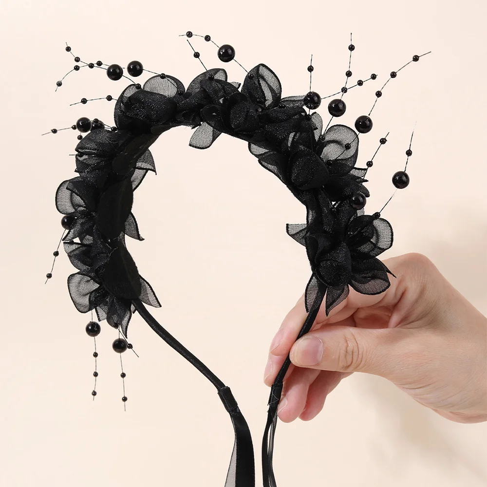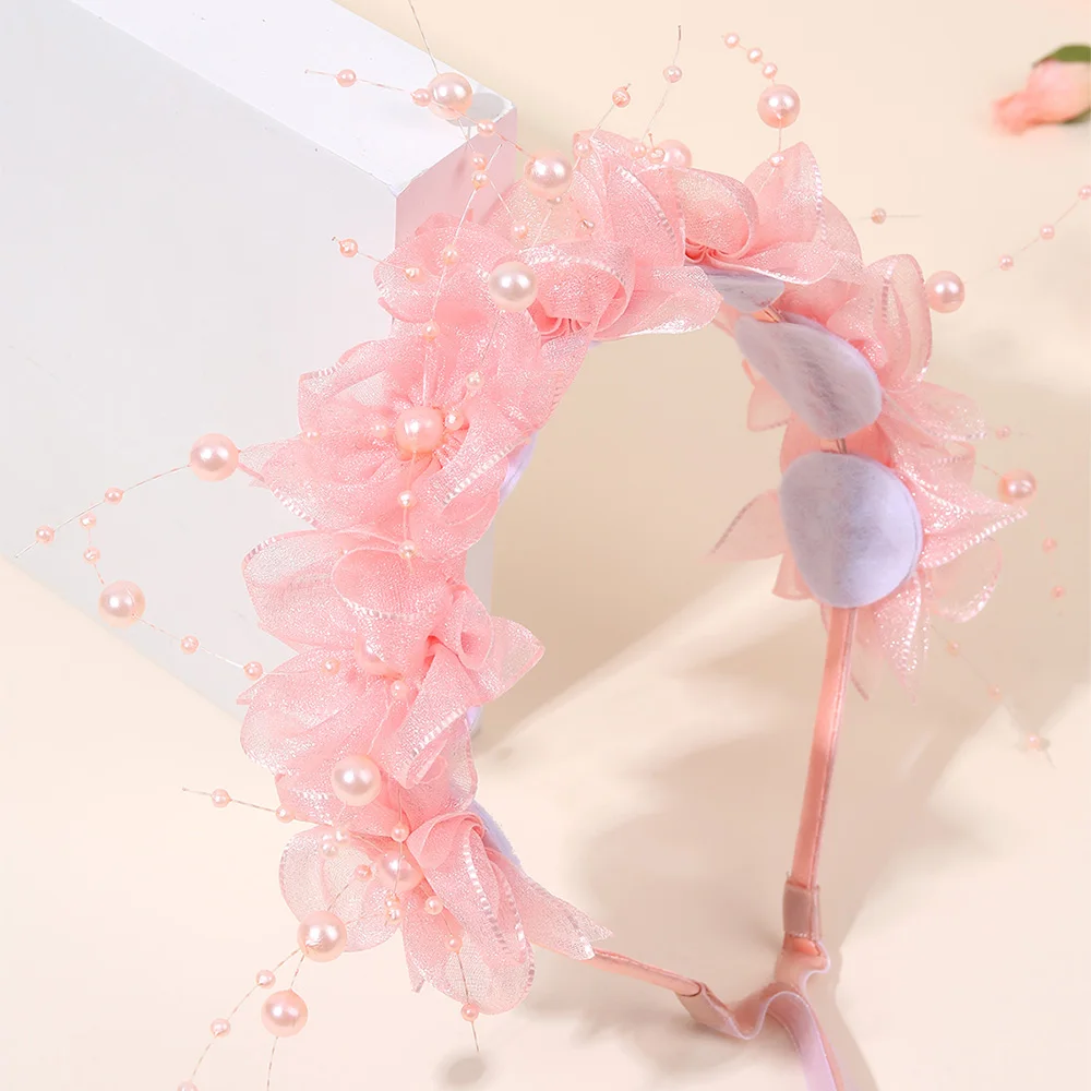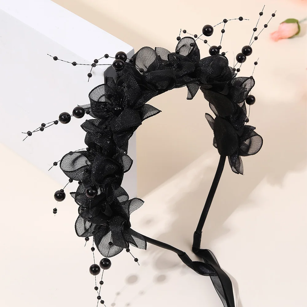 Fairy Flower Headband Sweet Lovely Girl Lace Floral Pearls Hair Hoop For Princess Wedding Birthday Headwear Accessories Gifts