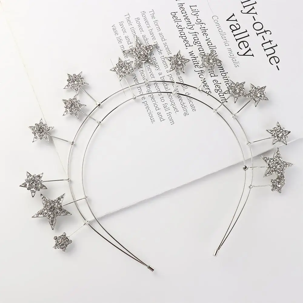 Fairy Metal Star Hair Hoop Princess Silver Halo Crown Rhinestone bilayer Baroque Hairbands Head Jewelry