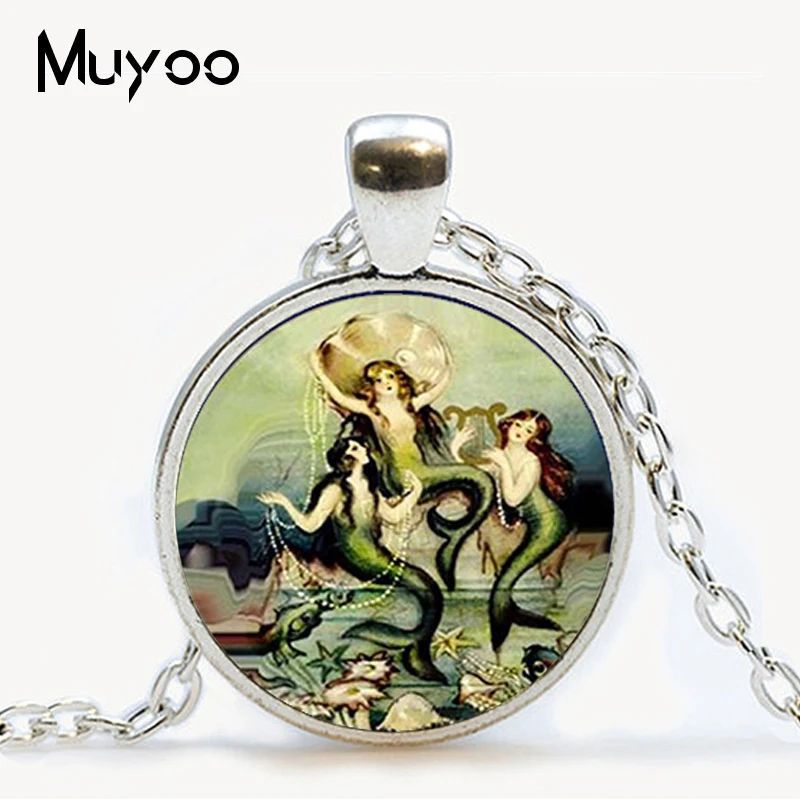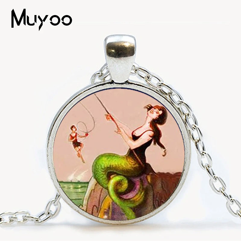 Fairy pendant necklace girl on bubble picture glass cabochon pendant necklace Mermaid Fashion chain neckless women jewelry