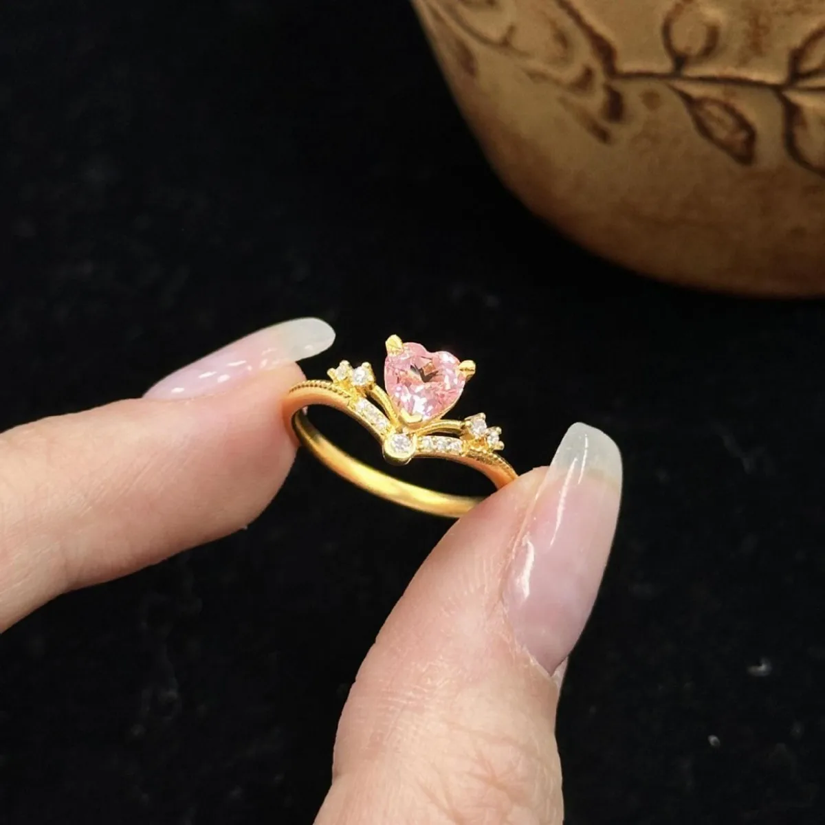 Fairy Wind Powder Love Crown Ring Exquisite Zircon Jewelry Versatile Light Luxury High-end Jewelry Temperament Commute