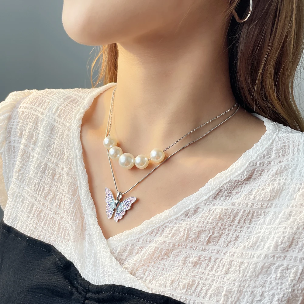 Fairytopia Mermaidia Enamel Butterfly Necklace For Women Thai Pop Imitation Pearl Necklace Multilayer Jewelry